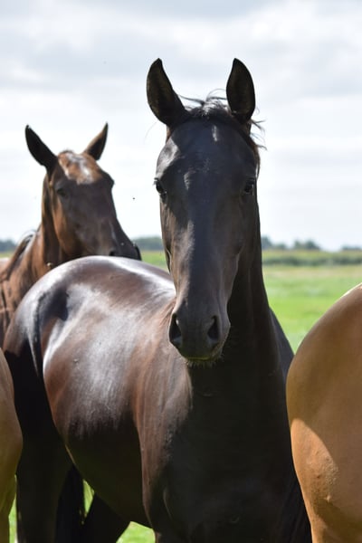 This 3-year-old black stallion impresses not only with his elegant appearance but also with his lovable character. He is people-oriented and uncomplicated in daily handling, always showing friendliness and willingness to learn. With his expressive movements and charisma, he draws everyone's attention – a real eye-catcher with great potential for the future. Whether as a future sport partner or a loyal companion: He has all the prerequisites to become the perfect partner by your side. Interested? Feel free to visit us and let yourself be inspired by our horses.