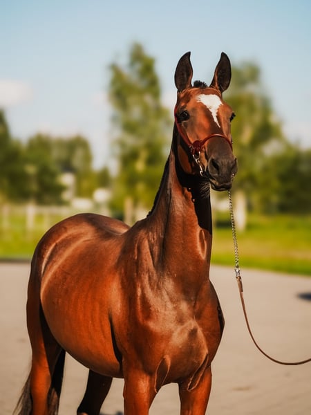 We are proud to present Patma Bibi, a stunning bay purebred Akhal-Teke filly, born on April 29, 2024. This elegant young mare combines beauty, athleticism, and a sweet temperament, making her a promising prospect for sport, breeding, or companionship. Breed: Purebred Akhal-Teke Name: Patma Bibi Color: Bay Gender: Filly Date of Birth: April 29, 2024 Lineage: Fakirpelvan line Her sire, Bahram, is an exceptional stallion who achieved 3rd place at the 2024 European Championship, showcasing his quality and performance ability. Her dam, Pozitsiya, is known for her excellent movement and has successfully competed in flat races in Pyatigorsk, further highlighting the athletic potential in this pedigree. Patma Bibi displays the trademark grace and refinement of the Akhal-Teke breed. With her expressive eyes, fine conformation, and naturally elegant carriage, she is sure to turn heads in any discipline. She is easy to handle, people-oriented, and possesses a naturally curious and gentle character. This is a rare opportunity to acquire a filly of such prestigious bloodlines and promise. Suitable for an experienced home looking to develop a star for the future.