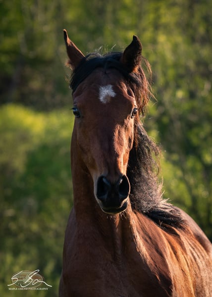 Mahmoud is a purebred Egyptian, energetic, and typy young stallion with a lovable character. He is correctly built with strong, well-angled foundations, a powerful body, and a good topline. His typy head transitions into a well-formed neck with a slight arch, which is well-set on a long, sloping shoulder. He has expansive, elastic movements and a people-oriented, affectionate character. He possesses good nerves and is a "really cool guy." All of this makes him a promising partner for endurance riders and ambitious recreational riders. Both his mother and father are good riding horses. Due to his lineage, excellent conformation, and wonderful character, he is also interesting for breeding. He is free from the genetic defects SCID, CA, and LFS. Mahmoud is familiar with groundwork, farrier work, trailer loading, children, cows, cats, dogs, chickens, large agricultural machinery, and road traffic—essentially, everything a young horse needs to know. He has grown up in a herd and is therefore well-socialized. Upon request, Mahmoud can also be gelded and sold as a gelding. Further upbringing in the stallion herd on-site is possible.