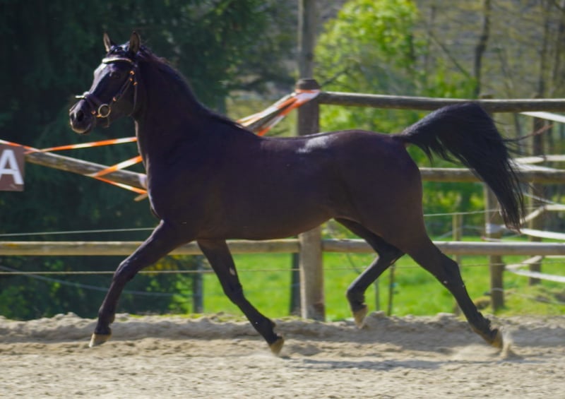 Se ofrece semental árabe negro de 5 años sin marcas. Ha crecido de manera adecuada con nosotros y ha pasado los últimos veranos en pastos de montaña con otros sementales. Actualmente está en entrenamiento. En cuanto a su carácter, es muy reservado con los extraños, pero una vez que confía, se deja manejar. Actualmente está en entrenamiento, lo cual es complicado en este momento debido a sus hormonas. Solo se entregará a conocedores de esta raza especial. Debido a su ascendencia y su correcto fundamento, también sería interesante para la cría, aunque una tenencia como caballo castrado sería mejor para él y su futuro propietario. Dado que tenemos algunas hermanas de él, también sería posible un intercambio por un semental negro de sangre diferente.