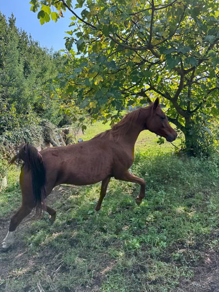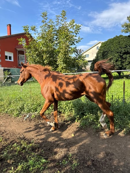 Wir präsentieren Duna CA, eine spektakuläre Stute der Rasse Arabisches Vollblut mit Fuchsfarbe und einer Größe von 1,51 m. Eleganz, Noblesse und Distinktion definieren diese großartige Stute, deren Champion-Genetik sie zu einer einzigartigen Wahl sowohl für die Zucht als auch für den Sport macht. Elite-Stammbaum: • Vater: Kanz Albidayer - Weltmeister und internationaler Referenzpunkt. • Großvater väterlicherseits: Ajman Moniscione, prestigeträchtiger Hengst, der die Rasse geprägt hat. • Urgroßvater väterlicherseits: Wh Justice, einer der großen Zuchthengste der Geschichte. • Großvater mütterlicherseits: Wadee Al Shaqab, Weltmeister und Stolz des Al Shaqab Stud. • Urgroßeltern mütterlicherseits: Marwan Al Shaqab, Legende und Vater von Weltmeistern. Duna CA vereint unvergleichliches Blut.