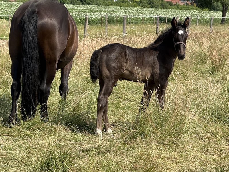 Zum Verkauf steht ein außergewöhnliches Alt-Oldenburger Hengstfohlen in beeindruckender Rappfarbe – geboren 2024. Vater ist der bewährte und ausdrucksstarke Rappe Dankwart, die Mutter stammt aus der linienstarken Verbindung Basta/Deport. Dieses Pedigree vereint Leistungsbereitschaft, Charakterstärke und Typvollendung in idealer Weise. Das Fohlen überzeugt durch: • Kräftigen, korrekten Körperbau • Ausdrucksstarke, schwungvolle Bewegungen mit natürlichem Gleichgewicht • Er hat ein menschenbezogenes, zahmes Wesen – bereits halfterführig • Gute Erziehung durch Aufzucht im Herdenverband – hervorragend sozialisiert • Ehrlicher, klarer Charakter – geprägt durch das ruhige, zuverlässige Wesen beider Elterntiere Egal ob Zucht, Freizeit oder späterer Sporteinsatz – dieses Fohlen bringt alles mit, um seinem neuen Besitzer viel Freude zu bereiten.