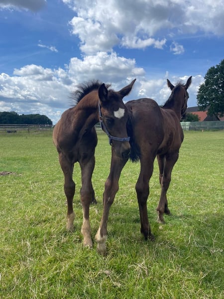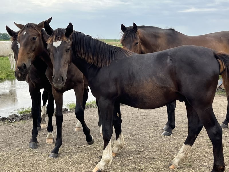 For sale is a stunning one-year-old black colt with an excellent pedigree and an approximate height of 16.1 hh. This young sporthorse impresses not only with its expressive basic gaits and sporting potential but also, above all, with its exceptionally sweet character. The young stallion is halter-trained, loading-friendly, and shows himself to be very human-oriented, curious, open, and relaxed in everyday handling. He was raised appropriately within a herd and demonstrates exemplary social behavior – both towards his peers and in daily contact with people. Key details: • Breed: Oldenburg • Color: Black (Rappe) • Age: 1 year • Approximate height: 16.1 hh • Gender: Stallion • Temperament: friendly, balanced, eager to learn • Training: halter-trained, loading-friendly • Upbringing: properly socialized in a mixed herd A young stallion with strong nerves, excellent potential for leisure, dressage, or driving sports, and a promising future ahead! If genuinely interested, we look forward to hearing from you. Viewings are gladly arranged by appointment. 📍 Location: Dötlingen ☎️ Contact: 015228008206 or info@braaklanderhof.de We are happy to place our raw diamond into caring and loving hands!