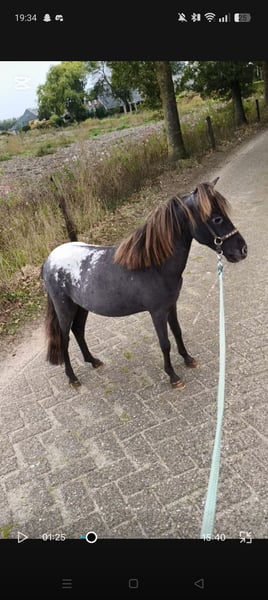 Hoiii Dit is Bonny Bonny is een amirikaans mininpaardje Hengst Met NAS stamboek van 25-06-2024 85cm en groeit nog Hij is mooi slank gebouwd hoog en recht op de beenen met een mooie lange slanke nek en natuurlijk ook een dikke bos maanen en staart Hij is een leuk bizonder kleurtje (zwart schabrakbont) en gestreepte hoefjes Hij gaat bij ons netjes mee naar de hoefsmid dit vindt die soms nog lastig maar wordt aan gewerkt Hij is nog groen maar wel heel braaf loopt altijd netjes mee ook aan de Longe tilt zijn hoefjes netjes op kan pasjes achteruit loopt makkelijk de trailer op kan langere tijd zonder toezicht veilig vast staan verkeer vindt die nog wel spannend maar daar werken we ook aan met lekker wandelen langs de weg. Kwa karakter is die heel lief en nieuwschierig en als die iets eng vindt komt die ook naar je toe voor hulp Bonny is wel een paardje die eerst een beetje aan je moet wennen maar daarna doet die ales voor je (zijn achtergrond is bekend bij ons) ik zie Bonny graag naar iemand gaan die het egt leuk vindt om met minies te werken en later ook misschien wat met hem wil gaan bereiken Hij is goed gesocialiseerd hij staat in een kleine kudde van 6 minies hij is honden katten koeien kippen gewend (Bonny is geen kinder pony, rij pony, weidemaatje of huisdier) Voor meer info stuur gerust een berichtje De prijs is bespreekbaar bij het juiste huisje Gaat aleen weg naar een 5⭐ huisje Mvg Elise van der vegt