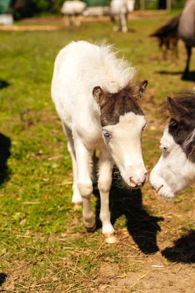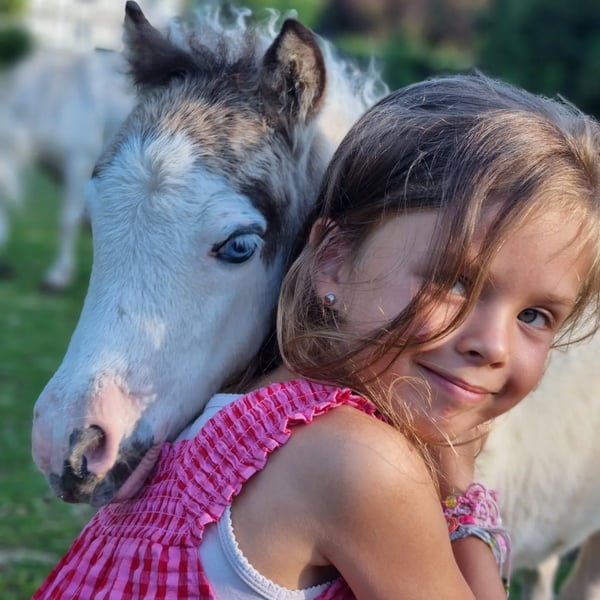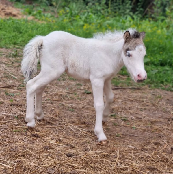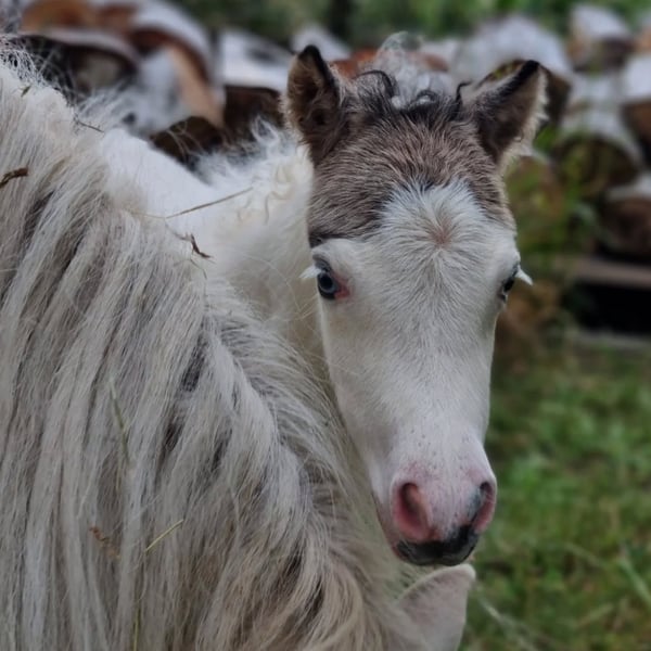 Wenn alles passt würden wir uns wohl von unserer hübschen Sunna trennen, Sunna ist im Juni 2025 geboren, Mutter ist Wesersteins Spirit of Maja (vorletztes Foto) und Vater der US Importhengst Circle S Painted Vegas ( letztes Bild). Sunna ist ein Buckskin Tovero mit zwei strahlend blauen Augen. Welche Scheckungen bei ihr gelandet sind muss noch ein Farbtest ergeben, ihre Mutter Trägt das Tobiano und das Splashed White Gen ihr Vater das Tobiano und das Overo (LWO+) Gen. Sunna selber ist fast komplett weiss, bis auf ihren Medihead und einen kleinen Fleck an der Seite, von ihrer Mama hat sie auch das Cremegen mitbekommen und sie trägt selber die tolle Farbe Buckskin. Eine echte Farbbombe und dazu noch sehr Gangstark was sie auch von ihrer Mutterlinie geerbt hat. Da es eigentlich nicht geplant war sie zu behalten, würden wir wenn der passende neue Besitzer kommen würde, uns auch von ihr trennen...ansonsten bleibt sie erstmal weiter. Charakterlich sehr Menschenbezogen und kennt alles was ein Fohlen in dem alter kennen sollte. Mehr Fotos und Videos gibt es gerne auf Anfrage
