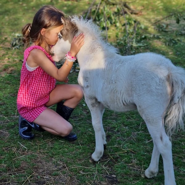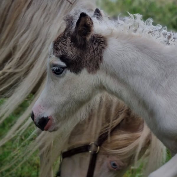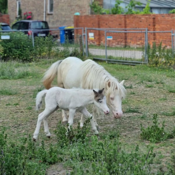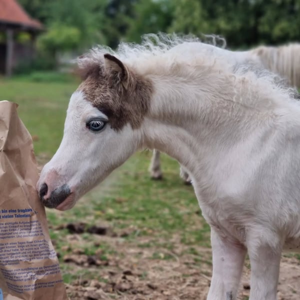 Si tout se passe bien, nous envisagerions de nous séparer de notre jolie Sunna. Sunna est née en juin 2025. Sa mère est Wesersteins Spirit of Maja (photo avant-dernière), et son père est l’étalon importé des États-Unis, Circle S Painted Vegas (dernière photo). Sunna est une jument buckskin tovero avec deux yeux bleus éclatants. La répartition de ses taches doit encore être confirmée par un test de couleur, sa mère portant le gène Tobiano et le gène Splashed White, tandis que son père possède le gène Tobiano et le gène Overo (LWO+). Sunna elle-même est presque entièrement blanche, à l’exception de sa tête mediolateral et d’une petite tache sur le côté. Elle a hérité du gène crème de sa mère et arbore la magnifique couleur buckskin. Une véritable bombe de couleur, et en plus très gaitée, ce qu’elle a également hérité de sa lignée maternelle. N’ayant pas prévu de la garder à l’origine, nous serions prêts à la céder si le bon nouveau propriétaire se présente… Sinon, elle restera avec nous pour le moment. Sur le plan du caractère, elle est très proche des humains et connaît tout ce qu’un poulain de son âge devrait savoir. Plus de photos et vidéos disponibles sur demande.