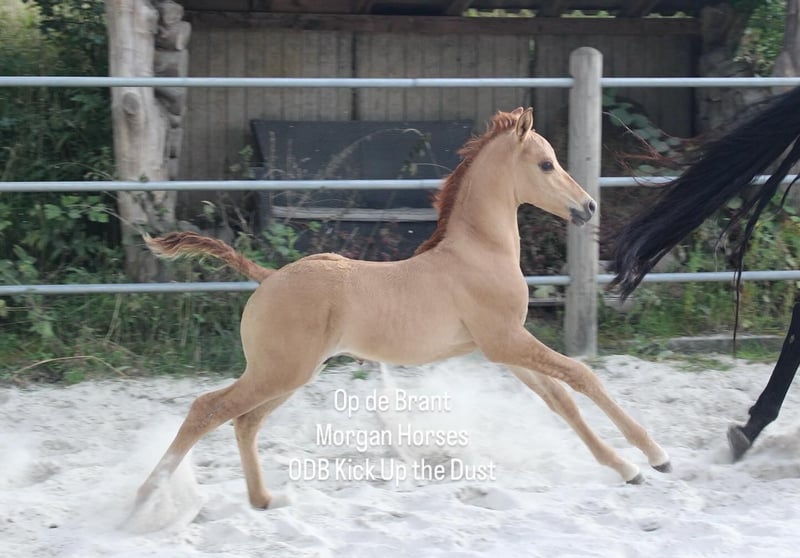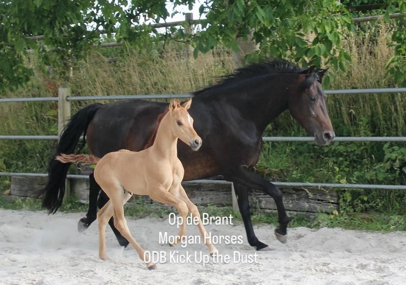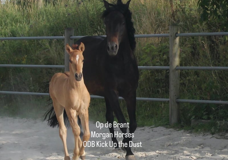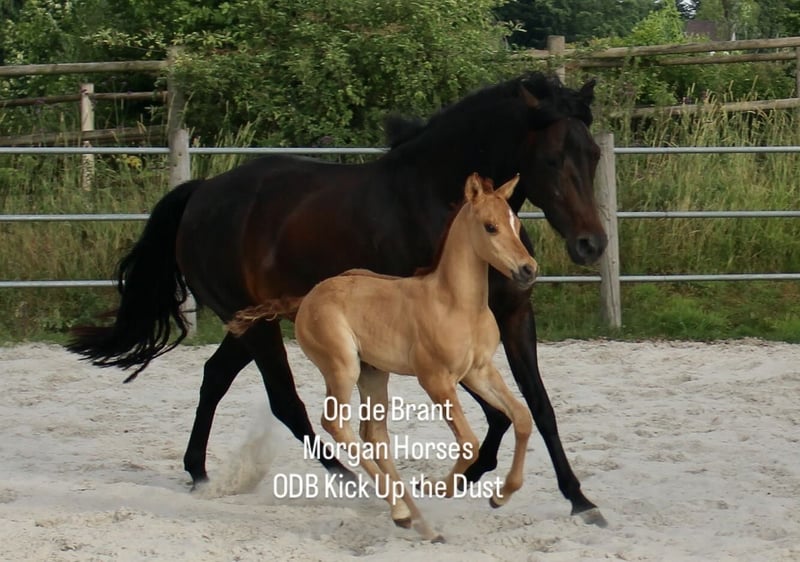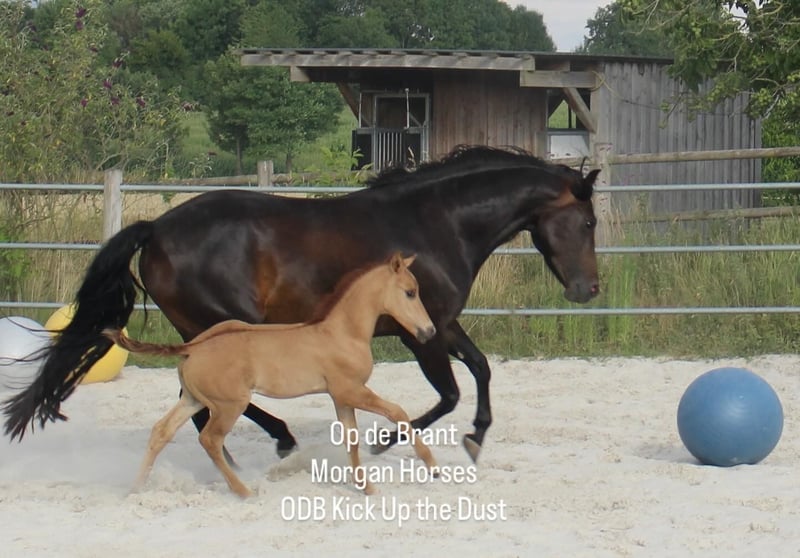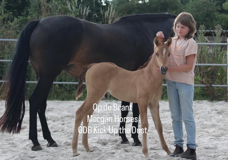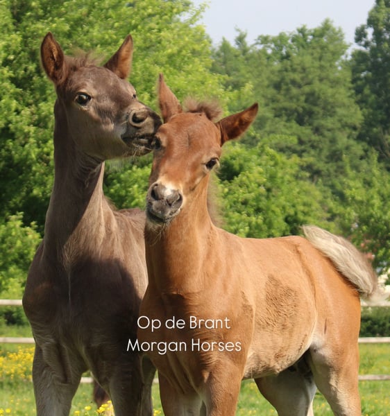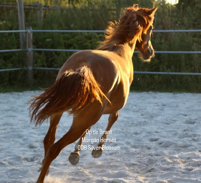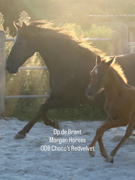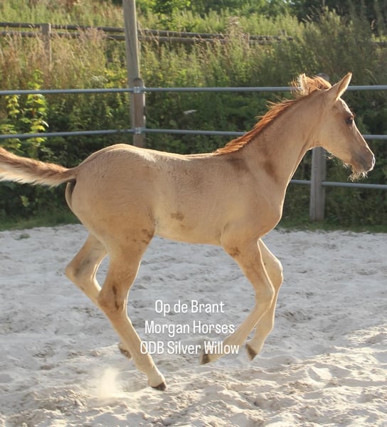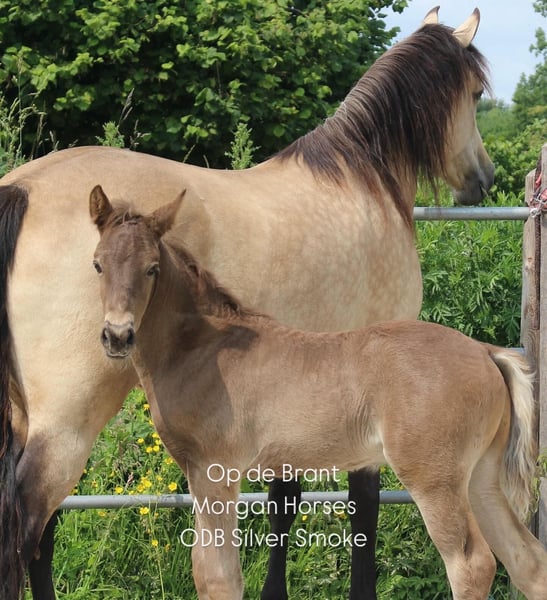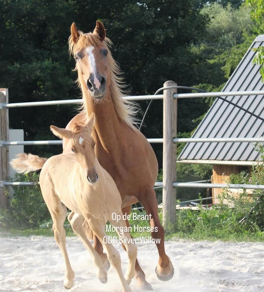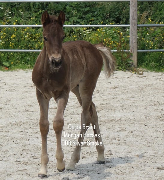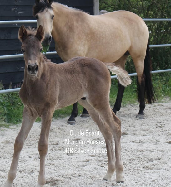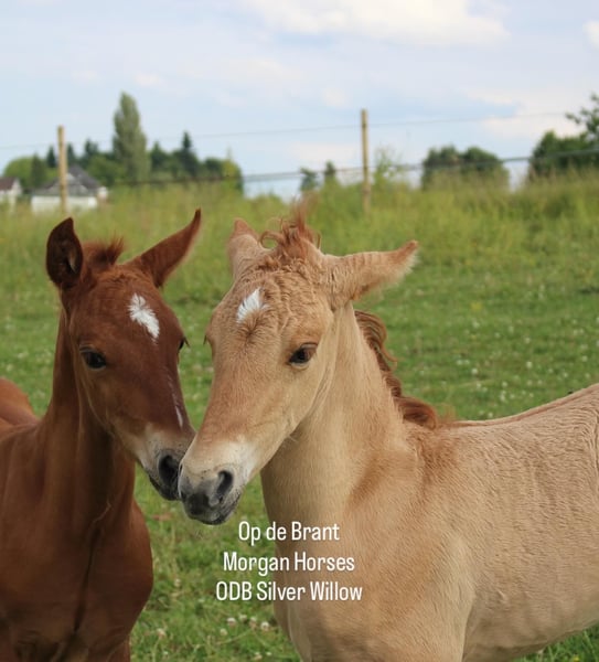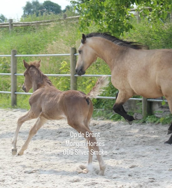 This year, we welcomed five beautiful colt foals. All of them are looking for a new home. Their sire is our American Morgan Horse stallion Schaenzer’s Silver Lining, a gelding with a very gentle and cooperative temperament. RESERVED 100% Morgan Horse ODB Silver Smoke (Smokey) Born May 3, 2025 Gelding Mother: EMMH Beloved Mulan Sire: Schaenzer’s Silver Lining Color: Smokey Silver Black 50% Morgan Horse, 50% Pinto Silver Glow Born May 6, 2025 Gelding Mother: Indy Sire: Schaenzer’s Silver Lining Color: Silver Bay 100% Morgan Horse ODB Silver Willow Born May 27, 2025 Gelding Mother: BMH Turbo Twinky Sire: Schaenzer’s Silver Lining Color: (Silver) Red Dun 100% Morgan Horse ODB Choco’s Red Velvet Born June 1, 2025 Gelding Mother: BMH Belle Choco Sire: Schaenzer’s Silver Lining Color: Chocolate 100% Morgan Horse ODB Kick Up The Dust Born June 24, 2025 Gelding Mother: Landmaat’s Milady Sire: Schaenzer’s Silver Lining Color: Red Dun 100% Morgan Horse ODB Silver Blossom Born May 10, 2024 Mare Mother: Landmaat’s Milady Sire: Schaenzer’s Silver Lining Color: Red