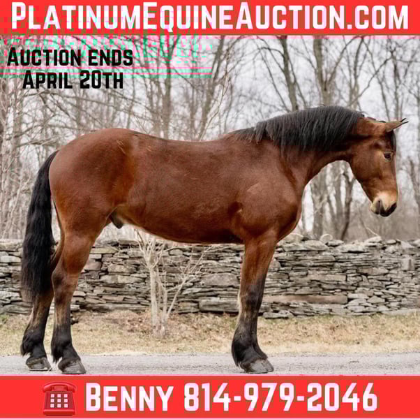 ONLINE AUCTION Place your bids at www.PlatinumEquineAuction.com Starting Bid $3500 Auction ends April 20th, 2025 Need a new saddle? Check out White Rock Saddles on our website or Facebook! Are you looking for your next sport horse prospect for eventing, dressage, equitation, fox hunting, 3 ring and so much more….the possibilities are endless with this one. Cruise is 3 year old gelding and stands 16hh and has incredible substance and bone- we were told he’s a friesian x morgan cross but he has no papers so I’m calling him a crossbred for the sake of this ad. This colt is QUIET and sensible way beyond his years, virtually unflappable. Cruise has an incredible start into his career, he rides walk, trot and canter, he takes both of his leads and has very easy down transitions and a great whoa! Cruise is learning to collect into contact nicely and travels around soft in your hands and leg yields both ways, he will step around his front on his haunches and backs up. He has been trail ridden a lot and is very quiet and comfortable out alone or in a group, through the fields and down trails. He also pleasure drives single with ease! Cruise is quiet standing tied, is patient for grooming and bathing and good for the vet and farrier. He will load into any style trailer and hauls quietly, he off loads in new places without a care and requires no ground work or prep just saddle up and go ride. Cruise is sound with no previous medical history or injuries- all prospective buyers are welcome to have a pre purchase vet exam done at their expense. If you need help in arranging transportation please don’t hesitate to ask and we would be happy to share our list of haulers with you. Located in Everett, PA. Contact Benny Hall 814-979-2046 with any questions. ONLINE AUCTION Place your bids at www.PlatinumEquineAuction.com Starting Bid $3500 Auction ends April 20th, 2025 Need a new saddle? Check out White Rock Saddles on our website or Facebook!