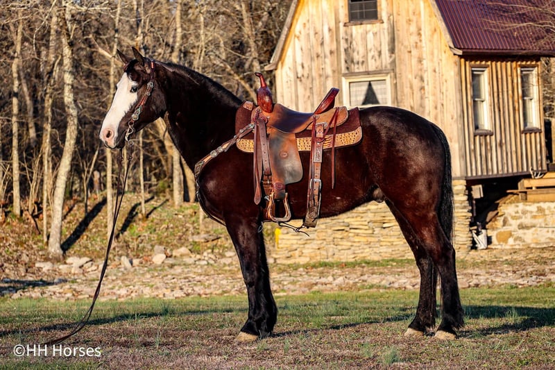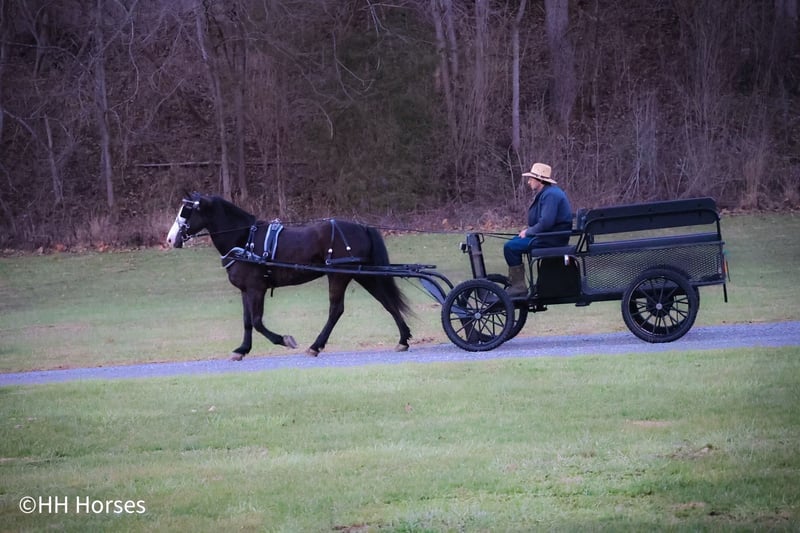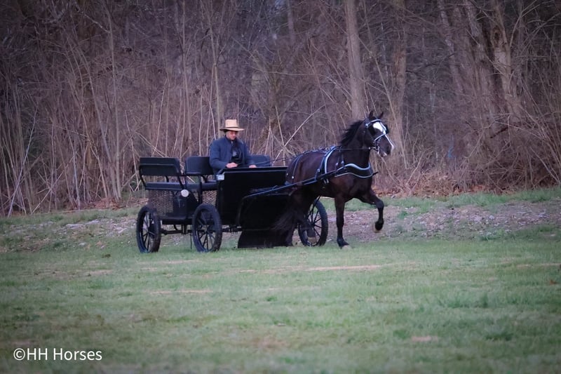 ONLINE AUCTION Place your bids at www.PlatinumEquineAuction.com Starting Bid $3500 Auction ends March 2nd, 2025 Need a new saddle? Check out White Rock Saddles on our website or Facebook! This is “PICASSO”, a very flashy BLACK MORGAN PAINT CROSSBRED GELDING that is broke to ride and drive. He stands 14.2 hands tall and is 5 years old. He is broke to farm machinery, he has pulled, carts, wagons, and sleighs. He is also broke to ride and will trail ride bravely anywhere you want to go. He is very stylish and a nice mover. He is extra fancy with a loud blaze face. He has lots of heart, stamina, and grit. He can go all day long and pull or carry a load. He has excellent ground manners, he stands to harness, hitch, tack, mount, and groom. He rides out alone bravely, he is traffic safe, and has had Amish children ride him to school and drive him to school. He has been driven on the main roads to town to the food store and will stand quietly to the buggy return. He is a very fun horse to ride that can ride in the pastures to check cattle and looks cool under English or Western tack in the arena. He is a very cute gelding with eye appeal, ride, drive, and sense. For more info or to make a Buy It Now offer contact HH Horses Erin 304-238-4155. Located in Flemingsburg, KY. ONLINE AUCTION Place your bids at www.PlatinumEquineAuction.com Starting Bid $3500 Auction ends March 2nd, 2025 Need a new saddle? Check out White Rock Saddles on our website or Facebook!