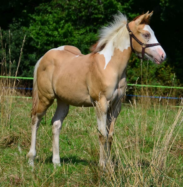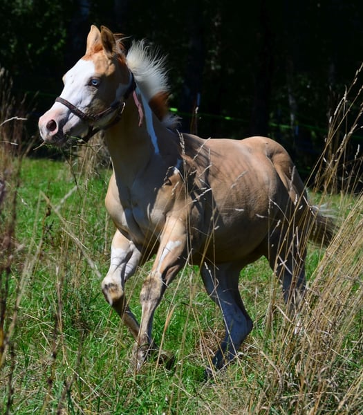 Jackson jest homozygotyczny dla genu Tobiano. Zawsze będzie miał kolorowe źrebaki. Ma promiennie niebieskie oko. Genialny rysunek i wspaniała sylwetka! Oczywiście ma 7 Panel N/N. Dorasta w odpowiednich warunkach na dużych przestrzeniach w dużej stadzie. Posiada papiery od APHA i paszport od PHCG.
