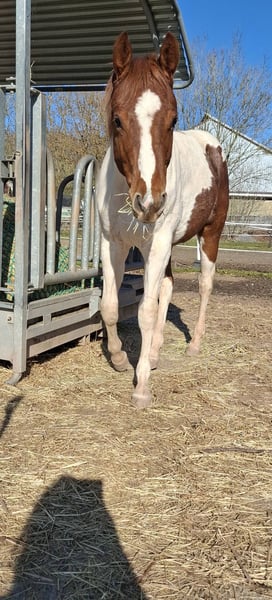Be My Painted Spook is a true eye-catcher. The Paint Horse stallion enchants not only with his striking appearance but also with his excellent pedigree. Monty was foaled in 2024 and is expected to reach a height of approximately 15.2 hh. He has a correct conformation and is already well-muscled. Monty is curious but also cautious in handling. At the time of sale, he will be familiar with basic foal training, and will be dewormed and vaccinated according to his age. He has tested n/n on the 6-Panel genetic test inherited from his parents. Monty boasts a very strong bloodline geared towards Reining and Cutting disciplines. His sire is the highly successful show stallion Best Spook, a proven sire with a 90.9% approval rate at breed inspections. He is an Intermediate Trophy Champion, Open Bronze Trophy Champion, European Senior Reining Champion (Open), AQHA Open ROM, World Show Qualifier Senior Reining, and more. Monty's dam is a daughter of Tru Docscherokee out of a Spooks Cow Smart mare. His dam is available for purchase to a suitable home.