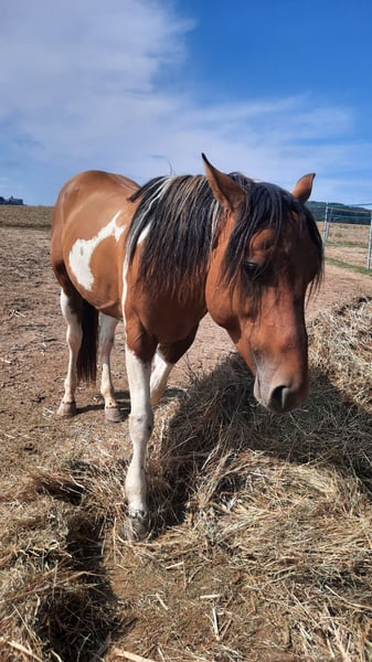 Beautiful 4-year-old Paint Horse stallion by Big Chic Gun, suitable for breeding or sport! Unbroken, very gentle, extremely calm and personable! No stallion mare mark! Easy and straightforward to handle!