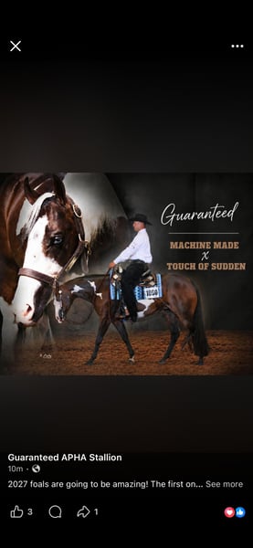 Discover the exceptional potential of this striking American Paint Horse stallion, born in 2026. He should mature to at least 16 hands tall, this buckskin Tobiano beauty combines classic conformation with a captivating coat that will highlight his distinctive markings. Well-built with an excellent pedigree he will demonstrate excellent athleticism and a natural presence that will turn heads wherever he goes. His mother has an excellent sweet temperament and is our go to horse for trail and arena riding. His father sires beautiful babies with very trainable temperaments for pleasure or the show ring. Whether you are a serious competitor or a discerning rider seeking a future star, this American Paint Horse offers a rare combination of beauty, talent, and temperament. We can take credit cards and make a payment plan for you. Don’t miss the opportunity to make this remarkable buckskin stallion a part of your stable.