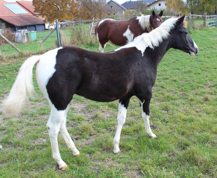 Wir verkaufen unser Paint Horse Stutfohlen To Be The Easter Queen, geb.am Ostersonntag,20. April 2025. In ihrem Pedigree ist Hollywood Jac zu finden, mit seinem Vater Easter King. Die kleine Queen freut sich auf eine Spielgefährtin, mit der sie sich richtig austoben kann. Sie ist ein Powerpaket, gesund und korrekt. Ihre Lektionen lernt sie gern und schnell.Wie ihre Mutter Fantastic Bumblebee beeindruckt ihr Cow sense, den sie mit der Schafherde auch täglich trainiert. Der Bewegungsablauf ist bemerkenswert geschmeidig. Ihr mutiges, neugieriges und schon jetzt entschlossenes Herangehen an unbekannte Aufgaben oder Dinge lässt darauf schließen, dass sie eine verlässliche Partnerin in jeder Lage werden wird. Certificate vom APHA ist vorhanden, Pass vorhanden, geimpft ist sie auch .Standort:Bezirk Wels-Land, OÖ