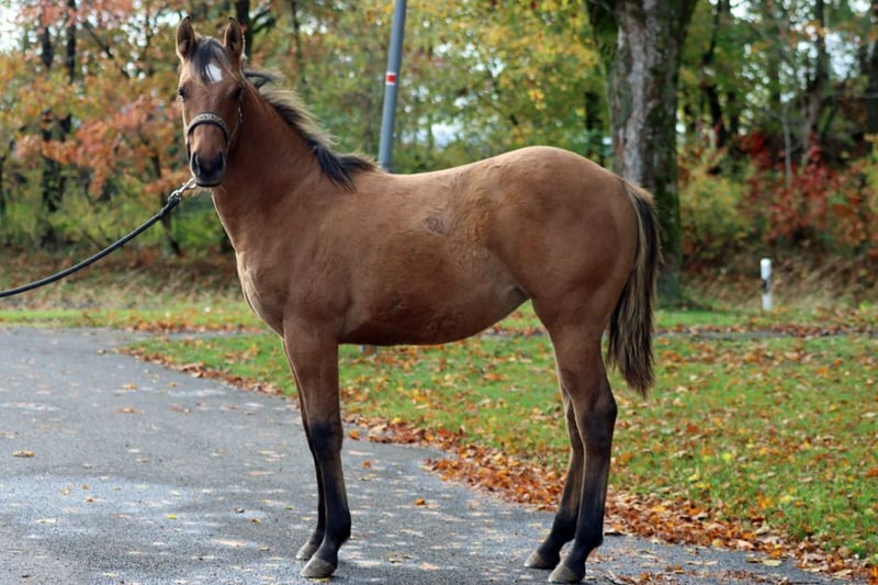 FHB SWEETIE GUN Bruine Dun APHA merrie Geboortedatum: 24-02-2025 Eindhoogte ongeveer 1.53 m