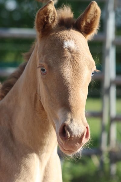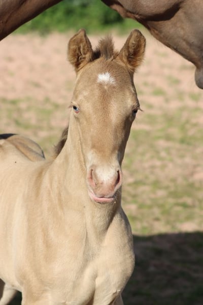 CHEYENNES VUDUGUNFIRE Amber Dun Champagne APHA Stute Geboren: 08.05.2025 Endgrösse ca 153 cm 7 Panel N/N Ee Aa Dd CHch