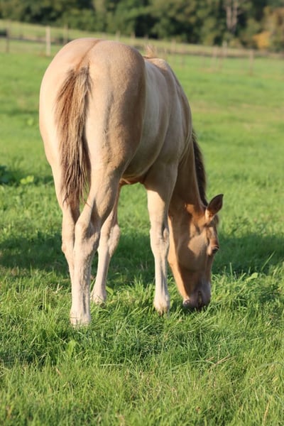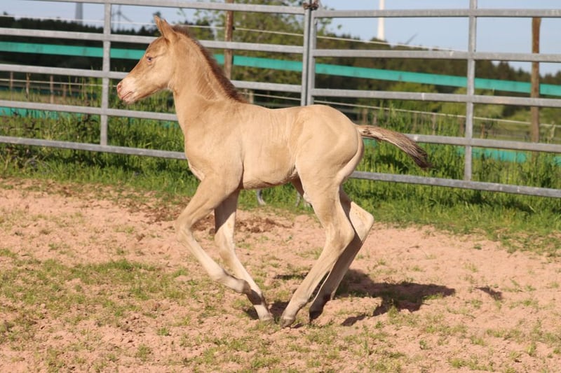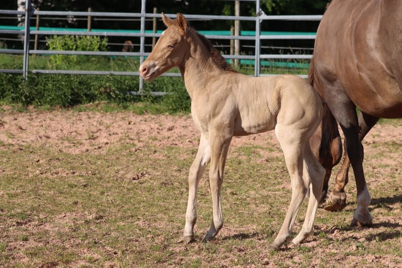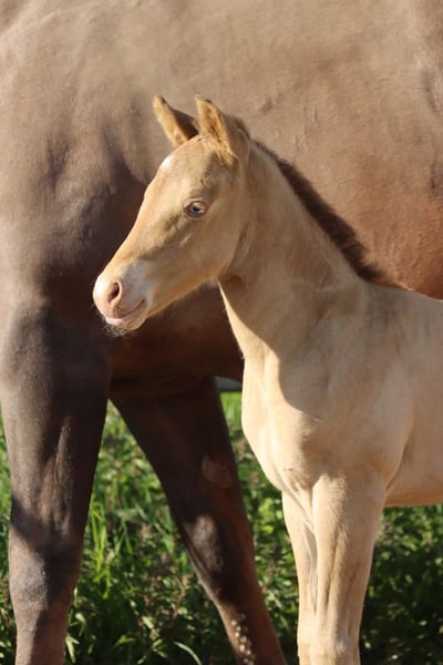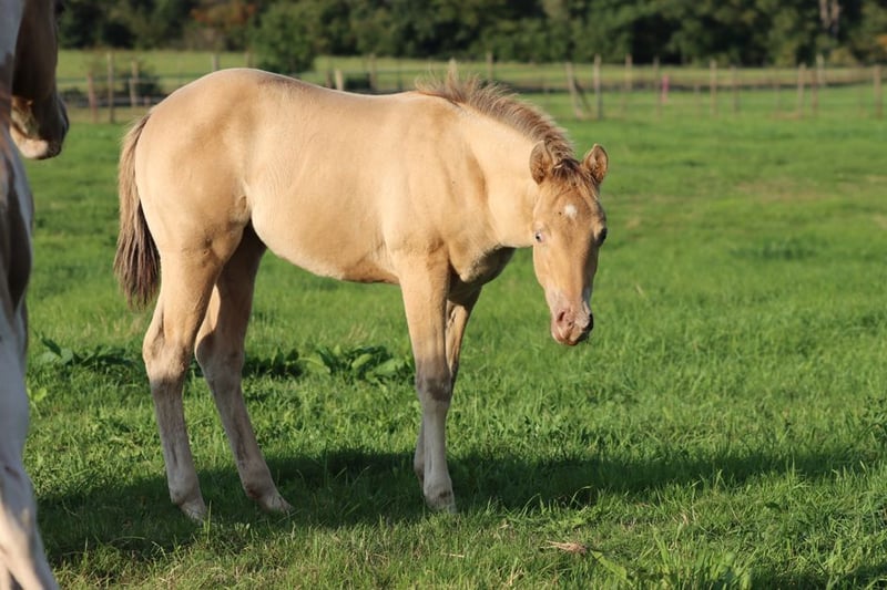 CHEYENNES VUDUGUNFIRE Amber Dun Champagne APHA Mare Born: 05/08/2025 Expected height approx. 153 cm 7 Panel N/N Ee Aa Dd CHch