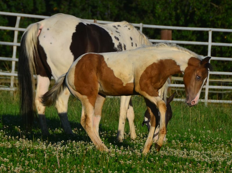 Amber/sable Champagne, homozygot Tobiano Stütchen.
