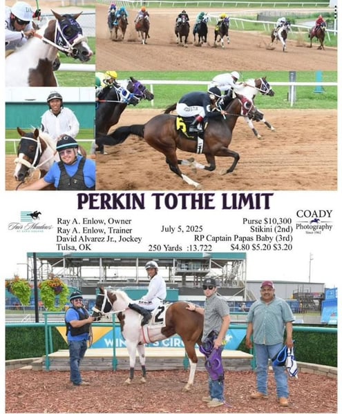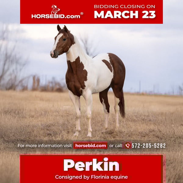 ⚜️𝓽𝓱𝓮 𝐆𝐎𝐋𝐃 𝓢𝓮𝓵𝓮𝓬𝓽⚜️ Happening now thru MONDAY | MARCH 23rd - Available EXCLUSIVELY on HorseBid's website! For more details and to register visit: www.Horsebid.com CONSIGNOR CONTACT: Florinia Equine 572-205-5282 LOCATION: Edmond Oklahoma BREED: Apha REGISTERED: Yes REGISTERED NAME: Perkin to the limits COLOR: Sorrel tobiano HEIGHT: 15 AGE: 3 GENDER: Mare Wow what an opportunity for someone wanting a proven filly!!!! Perkin to the limits is a gorgeous apha 3 yr old filly who had a first career on the track Extremly! One win and lighting the board every single out but one she has impressive talent and heart! She came home from the track completely sound and blemish free ! Perkins has settled into life very easily currently being ridden on the ranch , trail riding and loping correct circles in the arena she is ready for another career! She is out of an own daughter of dash for perks! This filly’s breeding is hard to come by and her pedigree is stacked with blacktype performers Perkins is so very gentle and polite stands tied for hours never any funny business never fresh straight to work she goes! She loves to learn and will be an incredible broodmare to add This filly’s breeding truly is the entire package of your wanting blacktype performance and a true performance prospect !