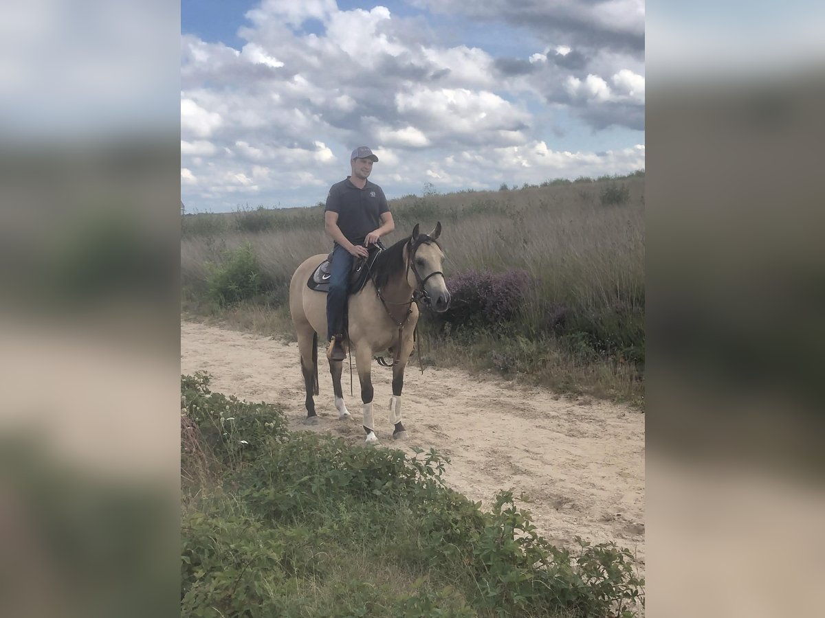 AS Wimpys First Doll (Charlie) Pedigree: Wimpys Little Colonel × The Great Guntini Year of birth: 2021 Color: Buckskin 5-panel: N/N In foal to: GP A Spook in Town – due mid April 2026 Due to private circumstances of the owner, we have sadly decided to offer this sweet mare Charlie for sale. Charlie was born with us, so her full history is known. Charlie is an honest and pleasant mare to handle. She has always been well maintained: correctly vaccinated, dewormed, trimmed, and recently checked by the dentist. Under saddle she is easy to ride, both in the arena and outside on trails. She has been ridden basic western. We are expecting her foal by GP A Spook in Town in mid April 2026; she conceived on the first attempt. Due to her pregnancy, Charlie has not been ridden for the past two months. Last year, Charlie already produced a beautiful foal by Smart N Sparkin. She is a good and easy mother, also very uncomplicated to handle with a foal at her side. Small remark on the X-ray, without clinical relevance. Charlie will only be sold to a good and suitable home. For more information, please contact +31 6 30915229.