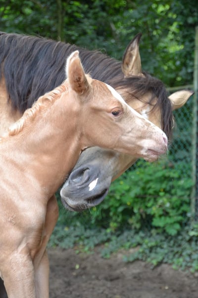 AS Wimpys First Doll (Charlie) Pedigree : Wimpys Little Colonel × The Great Guntini Année de naissance : 2021 Couleur : Isabelle Test 5-panel : N/N Enceinte de : GP A Spook in Town – prévue pour mi-avril 2026 En raison de circonstances personnelles de la propriétaire, nous avons malheureusement décidé de mettre cette douce jument, Charlie, en vente. Charlie est née chez nous, son historique complet est donc connu. Charlie est une jument sincère et agréable à manipuler. Elle a toujours été bien entretenue : correctement vaccinée, vermifugée, parée, et récemment examinée par le dentiste. En selle, elle est facile à monter, aussi bien en manège qu’en extérieur lors de balades. Elle a été monté en équitation western de base. Nous attendons son poulain par GP A Spook in Town à la mi-avril 2026 ; elle est tombée enceinte dès la première tentative. En raison de sa grossesse, Charlie n’a pas été montée ces deux derniers mois. L’année dernière, Charlie a déjà donné naissance à un magnifique poulain par Smart N Sparkin. C’est une mère douce et facile, également très simple à manipuler avec un poulain à ses côtés. Petite remarque concernant la radiographie, sans aucune importance clinique. Charlie sera vendue uniquement à une famille sérieuse et adaptée. Pour plus d’informations, veuillez contacter le +31 6 30915229.