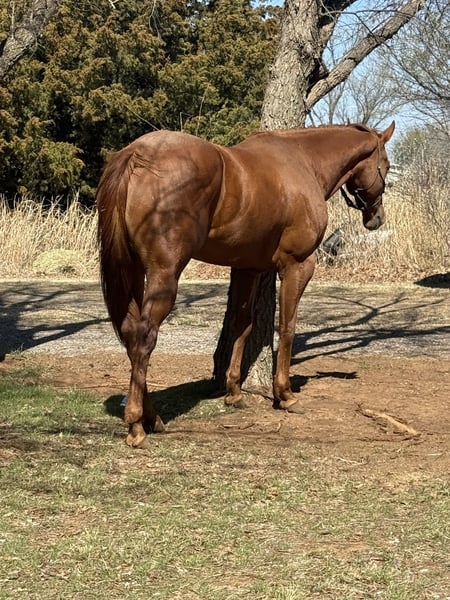 ⚜️𝓽𝓱𝓮 𝐆𝐎𝐋𝐃 𝓢𝓮𝓵𝓮𝓬𝓽⚜️ Happening now thru MONDAY | MARCH 23rd - Available EXCLUSIVELY on HorseBid's website! For more details and to register visit: www.Horsebid.com CONSIGNOR CONTACT: Florinia Equine 572-205-5282 LOCATION: Edmond Oklahoma BREED: Apha REGISTERED: Yes REGISTERED NAME: Goldrod COLOR: Sorrel HEIGHT: 16.3 AGE: 4 GENDER: Mare What an opportunity for someone looking for blacktype breeding with current money earnings! Mia is a 4 yr old mare who had her first career on the track! She has been home and being ridden on the ranch and is ready for her next career! Mia is completely sound clean and correct every way. She is loping correct circles trail rides and has pushed cattle. On the track she was impressive with two wins! and lighting the board multiple other occasions lifetime earnings to date is 16,750. Mia has an exceptional mind she is quiet and will stand tied never any funny business never fresh she is very work minded she is gorgeous standing 16.3 will make an outstanding broodmare addition one day her breeding speaks for itself she is truly a hard to find gem!! Offered by Florinia Equine please call anytime for questions 572-205-5282