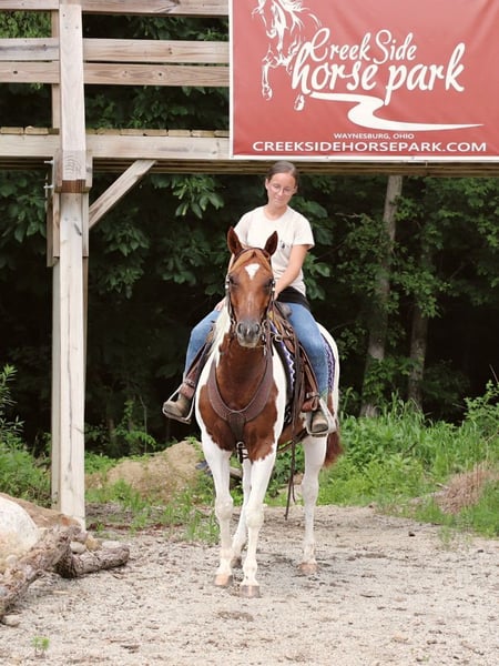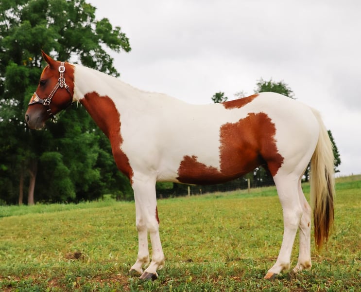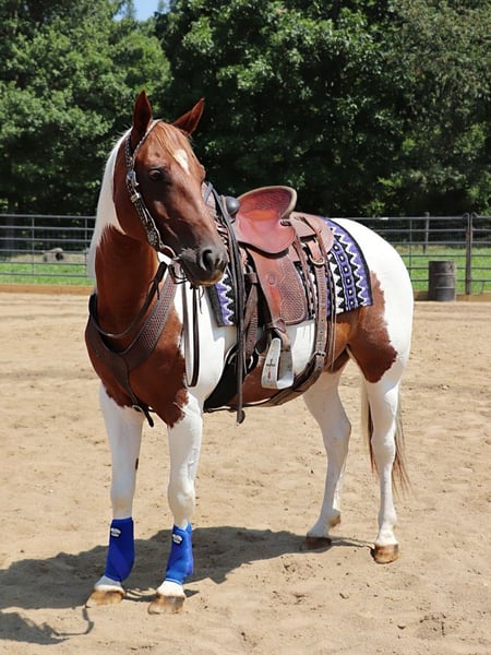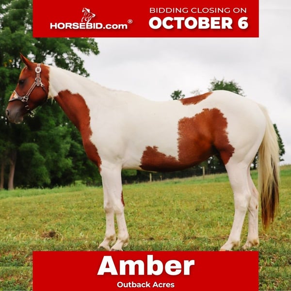 🍂 𝓐𝓾𝓽𝓾𝓶𝓷 𝑨𝑳𝑳 𝑺𝑻𝑨𝑹 𝑳𝑰𝑵𝑬𝑼𝑷 🍂 Happening now thru MONDAY | OCTOBER 6th - Available EXCLUSIVELY on HorseBid's website! For more details and to register visit: www.Horsebid.com CONSIGNOR CONTACT: Outback Acres 330-473-5855 LOCATION: Dundee, OH BREED: APHA REGISTERED: Yes COLOR: Brown & White Paint HEIGHT: 14.2 AGE: 7 GENDER: Mare " Amber is a gorgeous, athletic, and versatile mare with a big future ahead of her! Her bloodlines go back to Docs Hickory • Peppy San Badger • Freckles Playboy & Two Eyed Jack. She’s quick on her feet, tracks cattle with ease, and has been successfully used for sorting and penning. Started on the barrel pattern, she’s a great prospect for someone looking to finish her out as a performance horse—she loves to run and has the drive to excel. She is not finished on the pattern by any means but is started on it and knows the basics and shows tons of potential. She’s also proven herself as a fantastic mother, foaling easily last year, and would make an excellent broodmare option. Out on the trails, Amber is confident and sure-footed, crossing creeks, logs, and obstacles without hesitation. She’s been to a large mountain/obstacle course and handled it like a pro. She is used to all types of animals and has been around dogs, sheep, rams, goats, rodeo bulls, mules, and cattle. She will be the first one to greet you in the pasture and is easy to catch. She has been turned out with a mixed herd and got along well with mares and Geldings. Amber lopes a smooth, correct circle, picks up leads effortlessly, & performs flying lead changes. She’s forward, athletic, and best suited for an intermediate to advanced rider as she is quick on her feet and super athletic. She’s 100% sound, currently shod on all four, and ready to go to work. She is up to date on deworming and dental work. 📌 Don’t miss the chance to own a talented, versatile mare with proven bloodlines and endless potential!"