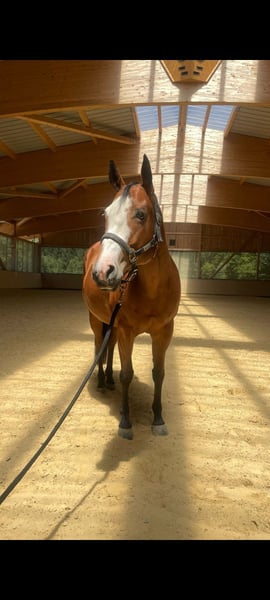 Verkaufe Pleasure gezogene Paint Horse Stute *2017 "Jolene" besitzt eine solide Grundausbildung und wird überwiegend auf Platz und Halle geritten. Geht auch allein ins Gelände wobei sie sich in Begleitung mit einem weiteren Pferd wohler fühlt. Sie wurde letztes Jahr auf dem Turnier in Pleasure, Trail, Ranch Riding und Horsemanship vorgestellt und hat dies brav gemeistert. Daher suche ich für sie einen erfahrenen Reiter, der ihr einen liebevollen Lebensplatz in artgerechter Haltung bieten kann und ihr Potenzial weiter fördert, ideal für den gehobenen Freizeitreiter, oder mit Tunierambitionen. Augrund ihrer Abstammung auch für die Zucht interessant. Jolene ist Schmiede- und Verladefromm, brav beim TA und Hufschmied und wird regelmäßig dem Zahnarzt und Physio vorgestellt. Sie kennt sowohl Boxen als auch Offenstallhaltung und ist sehr gut sozialisiert. Der passende Equieflex Sattel kann gerne dazu erworben werden. Weitere Info's und Video's gerne per privater Nachricht. VB
