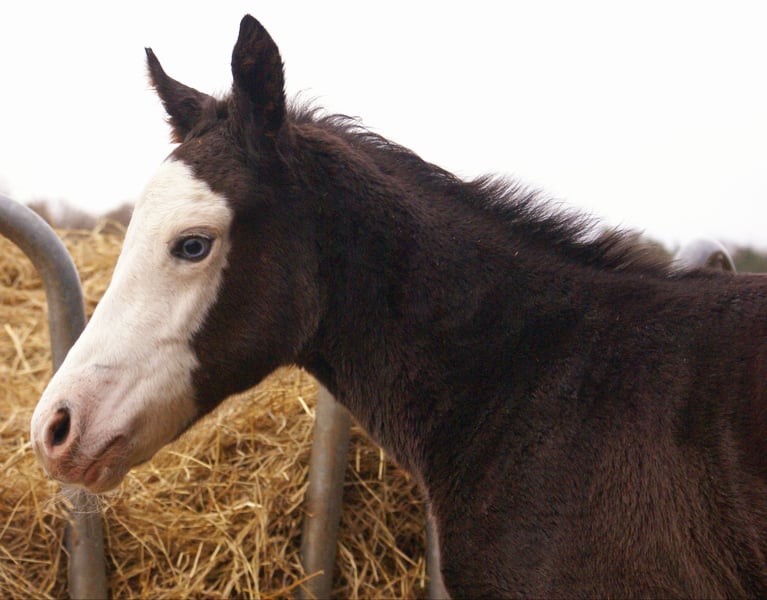 Absolute Schönheitskönigin, dunkel, 4x weiß, blaue Augen, wächst im Herdenverband mit anderen Fohlen zusammen auf, regelmäßig entwurmt, bei der APHA registriert, volle Papiere, für Sport, Zucht oder Freizeit