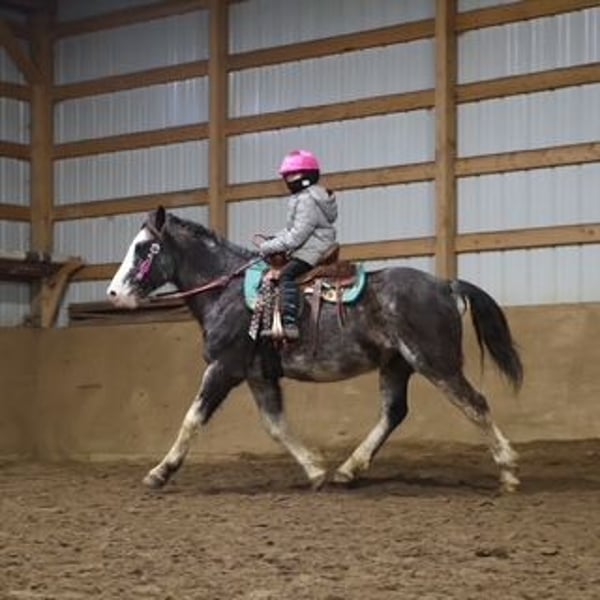 "AVAILABLE ON ONLINE HORSE AUCTION AT www DOT MagicHorseAuction DOT com BIDDING OPEN NOW thru TUESDAY | MARCH 3RD! BUY IT NOW AVAILABLE! *Final price will be determined on auction site* CONSIGNOR CONTACT INFO:ELLESSEE SCHWARTZ #248-390-6831 LOCATION:Howell, MI" "Meet Stetson! This 7 year old 14.1hh big bodied absolutely amazing blue roan and white paint pony has all the color and class in the world! Stetson is the sweetest guy you will meet. He will walk, trot and canter with ease, he has floaty and flat kneed gaits. He knows his leads and can canter from the halt. He has a lot of training in the arena and is overall more whoa than go making him a favorite for the kids at the farm. He is working on his liberty work and will follow you around like a puppy dog and is learning to lay down on command. He loves the attention that comes with liberty training and soaks up every minute of it. He shows up with a can do attitude day in and day out. On the trails he's as steady as they come, woods, bikes, wildlife big and small, deep water or small streams are no issue. He's been on several moonlight rides and is always up for an adventure. He's will take the lead or fall behind and follow along. He is not bothered if you ride out alone or in a group. He has been use to pasture rope and move cattle around the farm, when you take him to work he give his all and is one the timid riders and kids can depend on to get the job done, as he is as handy and sensible as they come. Stetson is also well broke to drive! He has been on the main roads and is traffic safe. You can also hook him up to go sledding. Stetson is an amazing all around handy broke pony who comes wrapped in the most beautiful color around! Stetson lives in Howell MI 48855! Call or text Ellesse at 2483906831! "