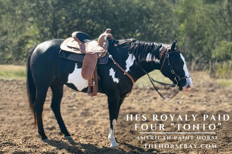 Tonto ist ein auffälliger, eingetragener Paint mit ausgezeichneter Konformation und angenehmem Temperament. Er eignet sich hervorragend für Ausritte und Übernacht-Camping. Er reitet allein oder in einer großen Gruppe, ist offen für neue Trails und fährt gerne mit unbekannten Pferden. Er kann an der Spitze oder in der Gruppe folgen. Er ist sicher auf hügeligem, felsigem Gelände, durch Wasser, über Baumstämme und Brücken, auf Asphaltstraßen und über Steine. Er ist verkehrssicher. Auf Wunsch kann er im Trab und Galopp auf den Trails laufen, bevor er in einen entspannten Schritt zurückkehrt. Wenn Sie nach einem ruhigen, vertrauenswürdigen Pferd suchen, das Ihr nächster zuverlässiger Begleiter fürs Reiten wird, das nicht schreckhaft ist – Tonto ist die richtige Wahl! Tonto ist das Pferd, auf das ich mich immer verlassen kann, besonders nach medizinischen Eingriffen oder Operationen, dank seines ruhigen und vertrauenswürdigen Wesens. Er ist gelassen, lässt sich gut am Boden führen, ist willig zu gefallen und ist ein zuverlässiger Helfer auf dem Hof. Man kann ihn mit Anfängern an der Longe reiten oder andere Pferde mit ihm ponieren. Er hat uns beim Anreiten unserer Fohlen geholfen und führt sie zuverlässig. Er ist gut auf Trails unterwegs und wirkt beruhigend auf junge oder unerfahrene Pferde. Er hat Potenzial für den Turniersport. Außerdem ist er auch zum Kutschfahren im Geschirr ausgebildet. Er hat bei zahlreichen Fernsehsendungen mit "Best of America" mitgewirkt. Andere Reiter loben sein Aussehen und sein vorbildliches Verhalten immer wieder. Er steht perfekt für das Aufsatteln und das Aufsteigen vom Boden oder vom Anstiegholz. Auch behinderte Reiter haben ihn schon geritten. Ich habe ihn auch in der pferdegestützten Psychotherapie eingesetzt, da er gut erzogen, ruhig im Umgang und sicher im Umgang ist. Er ist leicht zu pflegen, kürzlich beschlagen, hat einen Coggins-Test, ist aktuell entwurmt, hat eine gepflegte Unterwolle und wurde die Zähne gemacht – keine gesundheitlichen Probleme oder Vorerkrankungen. Rufen Sie an, wenn Sie Fragen haben, mehr über ihn erfahren möchten oder ihn kennenlernen wollen. Er ist ein schönes Pferd, und wir wünschen uns für ihn ein besonderes Zuhause. Wir befinden uns in Zentral-Missouri.