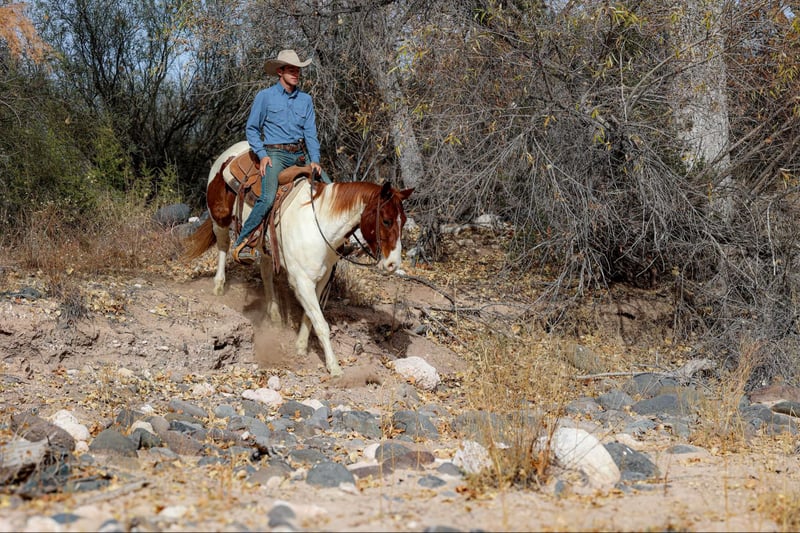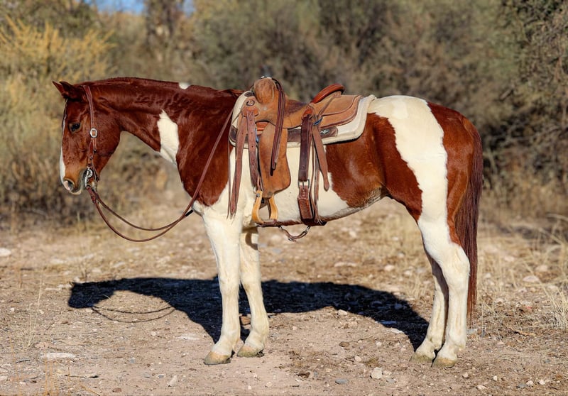 ONLINE AUCTION Place your bids at www.PlatinumEquineAuction.com Starting Bid $3500 Auction ends December 15th, 2024 Need a new saddle? Check out White Rock Saddles on our website or Facebook! Garfield is a grade 9 year old paint gelding standing 15hh. If you’re looking for a quick footed, honest, versatile gelding Garfield is your man! We’ve used Garfield dayworking all over Arizona, he will take good care of you no matter what job you throw his way. We’ve drug calves to the fire, caught and doctored yearlings, rode miles and miles of fence, and made plenty of big circles in the rough country. Not only is Garfield a great using horse, he’s just as good in the arena! Garfield will walk, trot, and lope both directions with ease, as well as neck rein and has a great stop. Located in Camp Verde, AZ. Contact D/C Equine Services Dallas 804-822-2233 with any questions. ONLINE AUCTION Place your bids at www.PlatinumEquineAuction.com Starting Bid $3500 Auction ends December 15th, 2024 Need a new saddle? Check out White Rock Saddles on our website or Facebook!