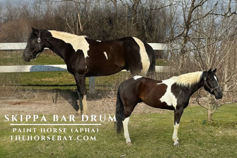OPEN BIDDING ON THEHORSEBAY,COM. SALE ENDS ON 10/02 @ 4:45PM CT. More information is available on the website, including an UTD vet inspection, Coggins, video, images, and the owner's contact information to ask questions, request information, or make arrangements to come to visit. Meet Skippa, our stunning 15.2 hands black/white tobiano/overo paint gelding. Skippa is a dream on the trail, shines in both indoor and outdoor arenas, takes jumps like a pro, and boasts impeccable ground manners. He’s the kind of horse that gets along with everyone, from other horses to mini donkeys, making him a barn favorite. Despite his flashy looks and kind heart, we’ve made the tough decision to find him a new home as we shift our focus to ponies for our four grandkids under three. Skippa excels in every way, works well with vets and farriers, and is physically and mentally sound. He’s not just a horse; he’s a companion ready to bring joy and adventure to his next family.