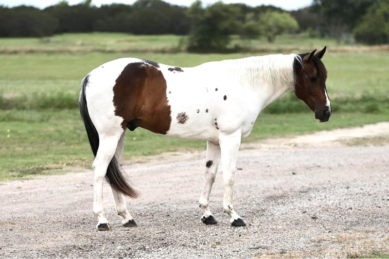 ONLINE AUCTION Place your bids at www.PlatinumEquineAuction.com Starting Bid $3500 Auction ends July 7th, 2024 Need a new saddle? Check out White Rock Saddles on our website or Facebook! Bandit is an 9 year old Grade Paint gelding that stands at 14.1 hands. Bandit will steal your heart with his amazing personality and calm disposition. He is gentle and kind with an adorable puppy dog personality. He comes running to you from the far end of the pasture just for some love, no treats needed to catch this guy! Bandit is a gentleman on the ground and in the saddle. He has a very smooth trot and lope that’s easy to sit. He will neck rein or direct rein. He is happy to collect and move a little slower or extend his gaits and cover some ground. Bandit does well being ridden by himself or with other horses. He has been ridden around cattle, gone on long distance trail rides, and gone to some play days. He will make an excellent all around horse that will quite literally go all day long. He is very consistent and does well with time off. Bandit stands stands tied nicely to be groomed, saddled, and bathed. He has been seen by our vet, farrier, dentist, and chiropractor recently and was an outstanding citizen for all. He loads on and off the trailer nicely. New sights do not bother him and he’s able to think through scary situations quite well. He has no vices that I’ve come across, does well in and stall or outside and is happy to be by himself or with other horses. Bandits personality makes him so fun to be around, he loves to be loved on and will always be happy to be with you. For more information and any questions you may have about Bandit, please call Sydney with SRS Training and Sales 518-935-8282. Bandit is located in Granbury, TX. ONLINE AUCTION Place your bids at www.PlatinumEquineAuction.com Starting Bid $3500 Auction ends July 7th, 2024 Need a new saddle? Check out White Rock Saddles on our website or Facebook!
