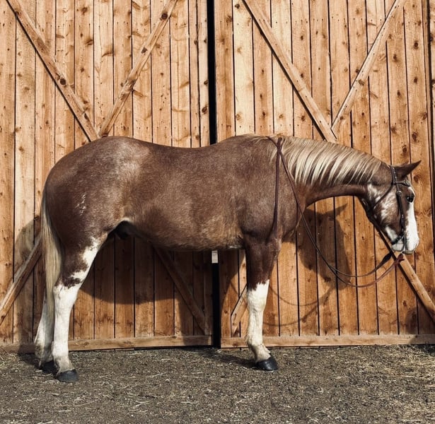 "AVAILABLE ON ONLINE HORSE AUCTION AT www.MagicHorseAuction.com BIDDING OPEN NOW thru TUESDAY | FEBRUARY 3RD! BUY IT NOW AVAILABLE! *Final price will be determined on auction site* CONSIGNOR CONTACT INFO: DYNAMITE HORSES # 970-632-3644 LOCATION: FORT COLLINS, CO" "★ RCR ENCHANTED CRUSH ★★ Registered APHA Gelding | 16.1 Hands | Built • Broke • Ready to Show or Go Trail “Chevy” is a striking registered APHA gelding standing a solid 16.1 hands, built like a tank with textbook conformation, strong feet, and an exceptional mind to match. His presence is as powerful as his pedigree — this is a gelding bred to impress and trained to perform. Chevy was successfully shown in walk/trot and in-hand classes as a two-year-old, and he’s since developed into an incredibly well-rounded mount with the training and talent to compete at higher levels. In the arena, he’s a dream to ride — effortlessly moving through walk, jog, and lope with flowy transitions and natural self-carriage. His stop is smooth, his turns on the haunches are balanced and correct, and his handle is light and responsive. But Chevy isn’t just an arena horse — he’s been exposed to plenty of real-world situations and shines just as bright out on the trail. From busy traffic to bikes, dogs, strollers, and chaotic urban scenes, nothing rattles him. He crosses water, tarps, and bridges, and confidently tackles whatever you point him at. Whether he’s cruising through the countryside or navigating the bustle of town, he stays calm, focused, and willing. This is a young gelding with the kind of foundation most riders dream of — broke, exposed, trained, and ready to go in just about any direction. Whether you’re headed to the show ring, looking for a trail partner, or want a versatile ranch prospect, Chevy checks every box with style. 📽️ Watch his video and take a look at his papers — this one is the total package. Come meet Chevy in person and see just how special he is."