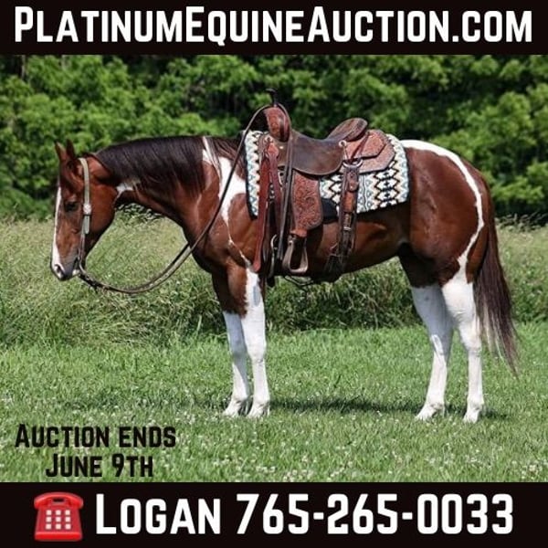 ONLINE AUCTION Place your bids at www.PlatinumEquineAuction.com Starting Bid $3500 Auction ends June 9th, 2024 Need a new saddle? Check out White Rock Saddles on our website or Facebook! Isaac is a well built Chestnut Tobiano gelding standing around 15-15.1hh and he is 4 years old. Issac has been used around the ranch and he has done some of everything. He is handy enough for sorting or he can go out in the pasture and be roped off of! Isaac is an excellent trail horse and has been ridden in multiple states from Texas to Kentucky. He will cross creeks, ditches, logs and navigate rough rocky areas. He is safe riding in traffic. He has a smooth jog, a very smooth lope, has a good stop, turns a circle both ways and backs with ease! Isaac is a confident horse on the trails and will lead the crew, head out alone with no issues! He has been exposed to all kinds of wildlife such as deer or turkey or other animals like cows or dogs and will go anywhere that he is asked too. He has been rode many miles in the mountains of Eastern Kentucky and encountered every obstacle possible on the trail. He will go up or down even the steepest slopes, across deep creeks, over downed trees, and over all types of rough terrain while still being sure footed. Isaac is not cinchy, cold backed, does not crib or weave. Issac has his whole life ahead of him and is looking for a partner to hit the trails with or a ranch to call home!!! Feel free to call Moore Trained Horses Logan 765-265-0033 with any questions. Located in Level Green, KY. ONLINE AUCTION Place your bids at www.PlatinumEquineAuction.com Starting Bid $3500 Auction ends June 9th, 2024 Need a new saddle? Check out White Rock Saddles on our website or Facebook!