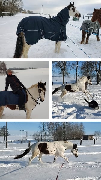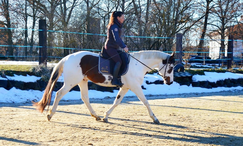 Zum Verkauf: Atemberaubender American Paint Horse Hengst – Tovero All-Colors Entdecken Sie die Schönheit und Vielseitigkeit dieses außergewöhnlichen American Paint Horse Hengstes, geboren im Jahr 2020. Mit einer Stockmaß von 1,62 m beeindruckt er durch sein auffälliges Tovero-Fellmuster, das eine faszinierende Mischung aller Farben zeigt und ihn zu einem echten Blickfang in jeder Herde macht. Dieser junge Hengst ist nicht nur optisch beeindruckend, sondern stammt auch aus einer renommierten Zuchtlinie, was exzellente Genetik und vielseitiges Potential in verschiedenen Disziplinen garantiert. Seine ausgeglichene Konformation und seine lebendige Ausstrahlung machen ihn zur idealen Wahl für Reiter, die einen vielseitigen und auffälligen Partner suchen. Ob für Show, Zucht oder Leistung – dieser American Paint Horse vereint Schönheit, Abstammung und Potenzial auf bemerkenswerte Weise. Verpassen Sie nicht die Gelegenheit, diesen außergewöhnlichen Hengst in Ihre Sammlung aufzunehmen. Er ist ein vierjähriger Zuchtstute, seit zwei Jahren unter dem Sattel. (Letztes Jahr (2025) ausschließlich Zucht, aber er ist sehr leicht zu reiten.) Für weitere Informationen und eine Besichtigung kontaktieren Sie uns gerne 😊