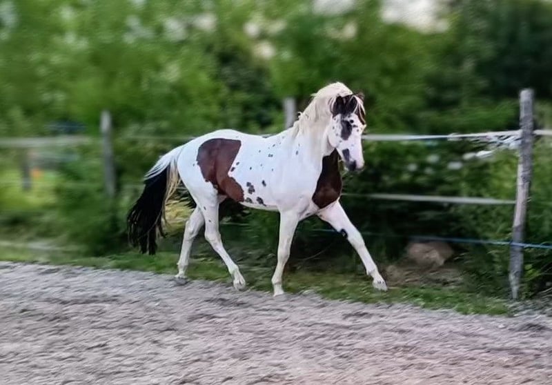 In vendita: Magnifico stallone American Paint Horse – Tovero multicolore Scopri la bellezza e la versatilità di questo eccezionale stallone American Paint Horse, nato nel 2020. Con un'altezza di 162 cm, sfoggia un affascinante mantello Tovero che combina in modo spettacolare tutti i colori, rendendolo un vero punto di riferimento in qualsiasi branco. Questo giovane stallone non è solo visivamente impressionante, ma proviene anche da un pedigree di alta qualità, garantendo ottime caratteristiche genetiche e potenziale per diverse discipline. La sua conformazione equilibrata e la presenza vivace lo rendono una scelta ideale per gli appassionati alla ricerca di un cavallo versatile e di grande impatto visivo. Che siate interessati a esposizioni, riproduzione o performance, questo American Paint Horse offre una combinazione straordinaria di bellezza, genealogia e potenziale. Non perdete l'opportunità di aggiungere questo notevole stallone alla vostra collezione. Ha 4 anni, è stallone da riproduzione e in attività da 2 anni. (Lo scorso anno (2025) SOLO per la riproduzione, senza monta, ma è molto facile da cavalcare). Per ulteriori informazioni e per organizzare una visita, non esitate a contattarci 😊