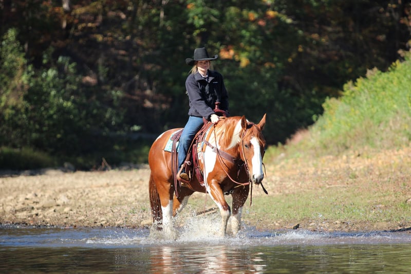 ⚜️ 𝓽𝓱𝓮 𝐇𝐨𝐫𝐬𝐞𝐦𝐚𝐧'𝐬 𝓢𝓱𝓸𝔀𝓬𝓪𝓼𝓮⚜️ Happening now thru MONDAY | DECEMBER 1st - Available EXCLUSIVELY on HorseBid's website! For more details and to register visit: www.Horsebid.com CONSIGNOR CONTACT: Rolling Meadows Farm 724-664-5327 LOCATION: Morriston FL BREED: APHA REGISTERED: Yes REGISTERED NAME: Grans Diamond G COLOR: Sorrel and white HEIGHT: 16.2 AGE: 7 GENDER: Gelding Introducing Grans Diamond G, Or as we like to call him Big G! Big G is an eye catching sorrel and white Tobiano paint gelding with unique markings and a beautiful build! He is registered with the American Paint horse Association and is 7 years old. He is a thick built boy made to carry any sized rider any where they want to go. He has great legs and feet that are built to last. Big G has been used as a ranch horse in South Dakota where he did all aspects of ranch work. He is very very well broke any level of rider will appreciate him. He has a soft one hand easy neck rein, he gives nicely to leg pressure, side passes both directions easily. Walks on a loose rein and Trots smooth and collected. He will pick up both leads at a lope and has a nice stop and back up. Big G will open and close gates, stand to be mounted and go all day on the trails! He has spent most of his time out on the trails or working the ranch moving cattle but he is also a fantastic arena horse he would make a nice lesson horse or even show horse. Big G has a great mind and a willingness to learn. He could go western or English. When it comes to ground manners Big G is a kind respectful boy. He leads nice and quiet and is friendly. He picks up all 4 feet with ease and baths, tacks, loads and stand tied. I have taken Big G on many miles of trails alone or with other riders and he’ll lead and follow. He goes thru the mud over the high logs and rough terrain with ease. Big G has a current passed Veterinarian Health Exam, Coggins and vaccinations. Please contact me if you have any more questions regarding Big G! LeeAnn -724-664-5327 thank you and have a wonderful day!