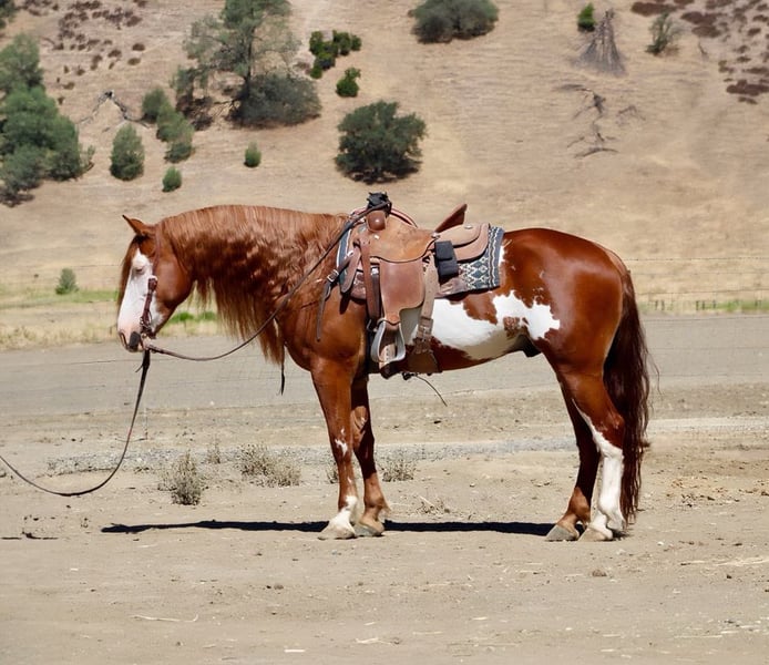 ONLINE AUCTION Place your bids at www.PlatinumEquineAuction.com Starting Bid $3500 Auction ends July 27th 2025 Need a new saddle? Check out White Rock Saddles on our website or Facebook If any horse was ever born to be famous, it’s this one. Axl Rose is a stunning 15.1-hand, 8-year-old Paint/Draft cross gelding with this beautiful long, flowing mane and tail and a presence that stops people in their tracks. He’s the kind of horse who turns heads wherever he goes—you’ll feel like he should be signing autographs! Axl Rose is as gentle as he is eye-catching. With his calm, cool attitude and go-anywhere mindset, he’s a true pleasure to ride. He’s been in multiple parades and handled them like a pro—unbothered by sirens, crowds, honking semis, or heavy traffic. Nothing rattles this guy. In the arena, Axl Rose moves with grace and ease. He lopes slow and soft, carries himself in a relaxed frame, has a solid stop, and a nice ranch-style turnaround.He is one of the smoothest horses we have ever rode. He has also been used to gather,rope and is so eager and willing to do whatever you ask, Whether you’re out to do a job on the ranch or just enjoy the ride, he’s right there with you, giving his all. Out on the trail, Axl is a steady and confident partner. He’s been across all types of terrain, through creeks, over bridges, and calmly walks along without a fuss. He has seen all sorts of obstacles and will conquer bridges, tires and walkovers with ease he has also carried flags,tarps and bouncy balls without a care in the world. He has a great brain and a kind heart, making him a dream for any level of rider. Axl is also incredibly friendly—he’ll greet you at the gate, follow you around like a puppy, and loves attention. He clips, bathes, and ties with ease, stands tied anywhere, is great in both stall and pasture, and hauls like a seasoned traveler. If you’re looking for a family-safe, drop-dead gorgeous, sweet-as-they-come gelding who’ll be the talk of the barn, Axl Rose is your man. Located in Paicines, CA. Contact Dina with Longhorn Ranch 831-537-1915 with any questions. ONLINE AUCTION Place your bids at www.PlatinumEquineAuction.com Starting Bid $3500 Auction ends July 27th 2025 Need a new saddle? Check out White Rock Saddles on our website or Facebook