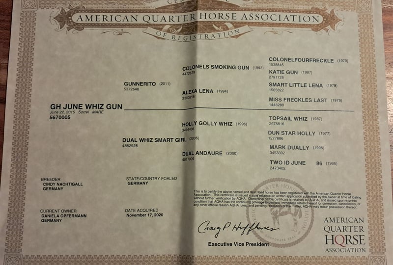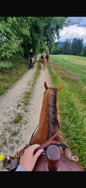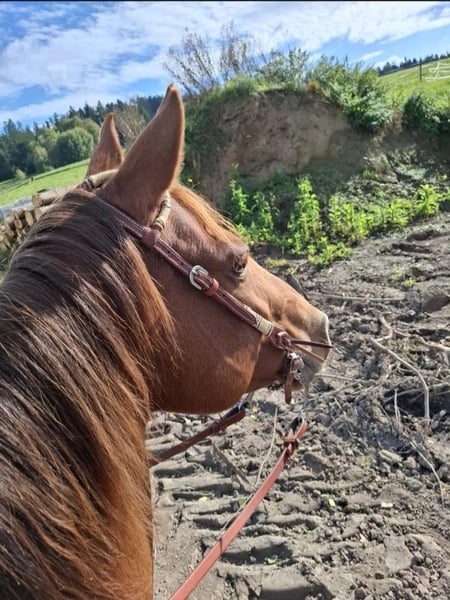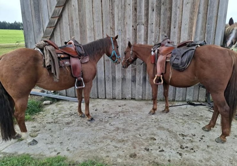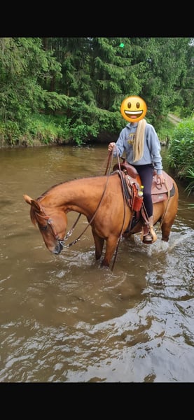 June, ein Engel auf vier Hufen! Diese wundervolle Stute lässt keine Wünsche offen. Beste Abstammung trifft auf super Charakter und sicheren Reitkomfort. Verlasspferd für Jung und Alt, super unkompliziert im Umgang, top sozialisiert in der Herde. Wander- und Orientierungsritte erfahren auch super gebisslos zu reiten, solides Freizeitpferd, nie im Sport gelaufen daher absolut unverbraucht, amerikanische Zuchtpapiere, vorbei kommen und verlieben, 10 Jahre, 150 cm. Für Wander-, Gelände-, Therapie- und Freizeitreiten. Englisch und Western ist beides möglich. Offenstall und Herdenhaltung gewöhnt, Box ist auch kein Problem. Equidenpass vorhanden. Alle unsere Pferde kennen Bodenarbeit, unterschiedliches Gelände, Autos, landwirtschaftliche Maschinen, sowie Kühe, Esel, Schafe, Schweine, Hunde, Katzen und Hühner. Infos und Terminabsprache unter 08536-2890292 (AB vorhanden) oder 0157-78378455 (am Hof kein Mobilnetz). Bitte keine PN, Mail und WhatsApp Anfragen!! Sonntag Ruhetag. Zubehör und Transport günstig möglich. Jedem Kunden wird ein vertraglich festgesetztes Umtauschrecht von 6 Wochen eingeräumt. Preise sind Festpreise. Keine Anfragen auf Ratenzahlung erwünscht. Wer gleich mit Anhänger kommt und mitnimmt erhält 100€ Rabatt. Bei Kauf werden 1000€ in bar als Anzahlung fällig. Wer das Pferd gleich mitnehmen will, muss selbstverständlich komplett bezahlen. Wir absolvieren mit den Kunden einen Ausritt mit zwei Pferden Eurer Wahl, damit Ihr Euer Traumpferd kennenlernen und prüfen könnt ob es das richtige Pferd für Euch ist. Jeder Termin kostet 35€, egal ob reiten, vorreiten, bereitstellen, spazieren ... jeder weitere Reiter (Freundin, Freund, Schwester, Trainer...) bezahlt das selbe wenn er mitreitet, nur mal schauen kostet uns auch Zeit und somit 20€. Der Betrag wird beim Kauf eines Pferdes am selben Tag wieder erstattet. Aufgrund mehrfacher Vorkommnisse bitten wir darum wahrheitsgemäße Angaben über das Reitergewicht zu machen. Bei nicht wahrheitsgemäßen Angaben behalten wir uns vor, uns vor Ort gegen einen Proberitt zu entscheiden. Unseren Pferden zu Liebe möchten wir auch unseren gut gebauten Pferden nicht mehr als 120kg zumuten. Da es sich hierbei um ein lebendes Tier handelt, sind dies lediglich Eindrücke des Betreuers und keine zugesicherten Eigenschaften des Pferdes. Weitere Pferde/Ponys in meinen anderen Anzeigen oder auf Anfrage.