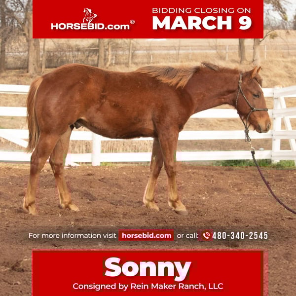 ℳ𝒶𝓇𝒸𝒽 ♦️𝐑𝐈𝐃𝐄𝐑'𝐒 𝐂𝐇𝐎𝐈𝐂𝐄♦️ Happening now thru MONDAY | MARCH 9th - Available EXCLUSIVELY on HorseBid's website! For more details and to register visit: www.Horsebid.com CONSIGNOR CONTACT: Rein Maker Ranch, LLC 480-340-2545 LOCATION: Purcell, OK BREED: AQHA REGISTERED: Yes REGISTERED NAME: Wallys Lil Magnum COLOR: Sorrel HEIGHT: 14 AGE: 0 GENDER: Colt Sonny is AQHA, NRHA North American Nominated, NRBC, All Star, NARS, giving him added value and eligibility opportunities in the show pen. He is sweet-natured, personable, and easy to be around — the kind that wants to be your partner. Good-minded and attentive, he handles well and shows a trainable, willing attitude that serious horsemen appreciate. Athletically, he is balanced and fluid in his movement with natural forward motion and structure. He shows early promise as a performance prospect and has the tools to develop in the right program. ✔ Athletic and correct ✔ Good disposition ✔ Nice mover with balance and presence ✔ Shows strong future potential Wallys Lil Magnum is the kind you can build a program around — good mind, good body, and the pedigree to back it up. Wallys Lil Magnum is a standout sorrel yearling colt sired by Ruf Lil Magnum and out of Wallies Little Chic. He combines pedigree, athleticism, and disposition into a colt that is both exciting and enjoyable to have in the barn.