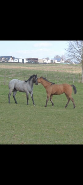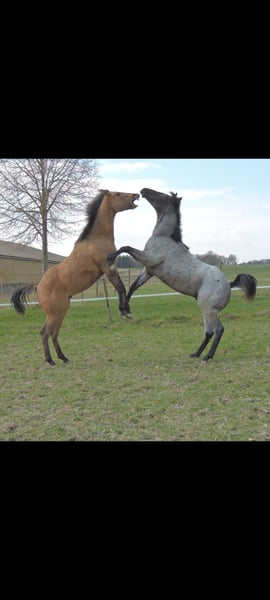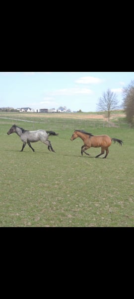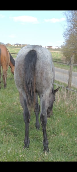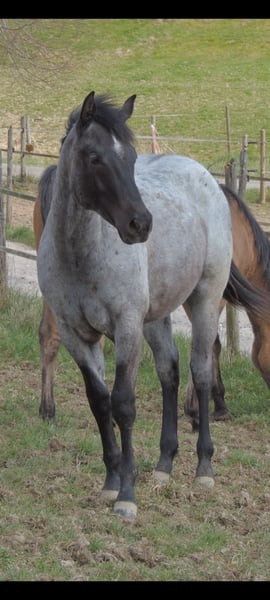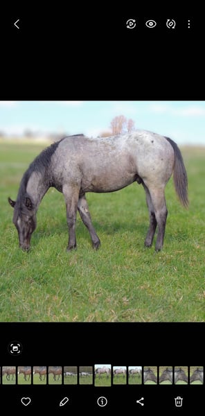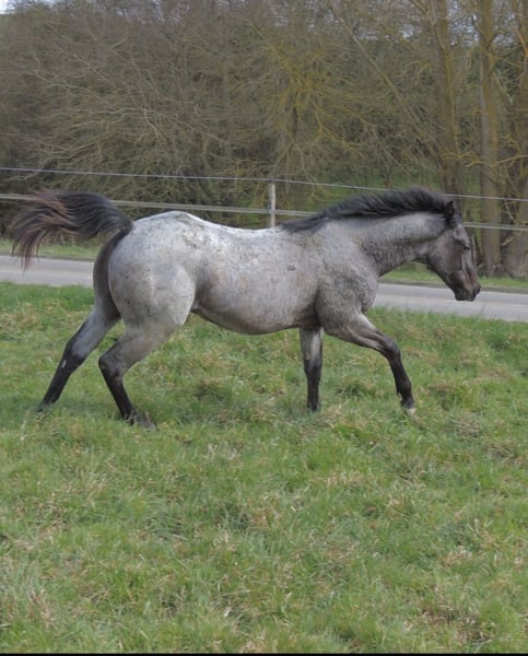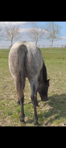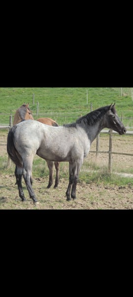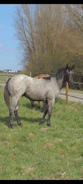 Blue Roan Fohlen geboren 22.3.2025 . Zur Zeit ist er 146cm groß und das Endmaß liegt ca bei 156-158 cm ! Regelmäßige Wurmkuren , Impfungen und Hufschmied sind selbstverständlich ! AQHA Papiere liegen vor ! Die Fotos sind aktuell , aber er hat noch nicht das eigentliche Sommerfell ! Er ist 6 Penel getestet mit N/N
