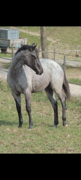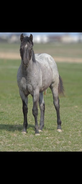 Puledro blue roan nato il 22 marzo 2025. Attualmente misura circa 146 cm e la sua altezza finale sarà di circa 156-158 cm. Sono garantite regolari deworming, vaccinazioni e ferrature. Sono disponibili i documenti AQHA. Le foto sono recenti, anche se il suo mantello estivo non è ancora sviluppato completamente. È stato testato con il metodo Penel a 6 mesi, risultato N/N.