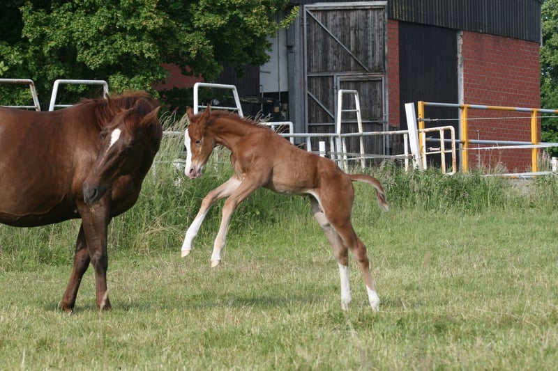 Wir verkaufen unseren ‚Mogli‘ aka KK Special LikeABoon. Der kleine Kerl in der leuchtenden Fuchsjacke mit den besonderen Abzeichen wurde am 23.05.2025 geboren. Aktuell sieht es aus, als würde er zusätzlich Rabicano werden. Seine Mutter ist Special Little Step, eine Wimpys Little Step Enkelin. Sein Vater ist RedWhiteAndBlue Boon - doppelter Futurity Sieger im Cutting in Italien. Unser Fohlen ist 5 Panel n/n getestet. Bei der Zuchtschau am 10.08.25 in Ennigerloh wurde er mit 79,79 % bewertet. Auf dem Bundesfohlenchampionat der DQHA am 11.10.2025 präsentierte er sich wie ein Großer und belegte einen hervorragenden 5. Platz von 14 vorgestellten Fohlen. Vor allem aber war er während des gesamten Abenteuers sehr brav und mutig. Alle unsere Fohlen werden regelmäßig mineralsiert und entwurmt. Er könnte zur weiteren Aufzucht bei uns bleiben. Mogli ist abgesetzt und lebt in einer Fohlengruppe im Offenstall. Meldet euch bei Fragen gerne einfach bei mir: Kerstin Averwald Wessenhorst 15 59320 Ennigerloh 0176 14741474 www.kk-westerntraining.de