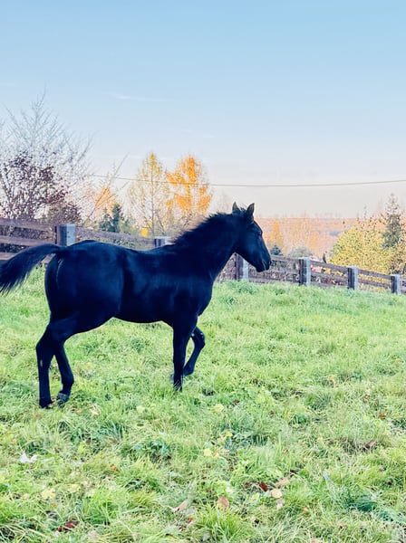ELECTRIC BLACK MM is a very charming young stallion born on May 6, 2025, sired by MR ELECTRIC SPARK out of PEARL WITH HOLLYWOOD. Well-behaved, healthy, vaccinated, and regularly castrated. Friendly, very social, a real stable mascot :) Certificate in progress.