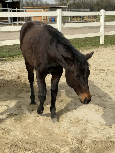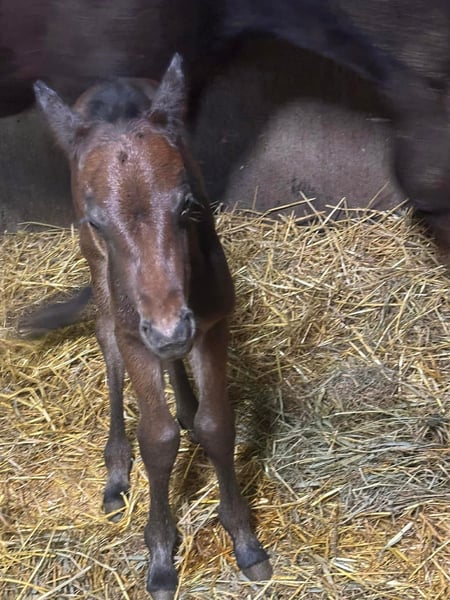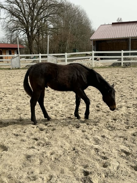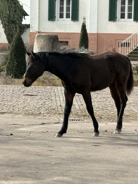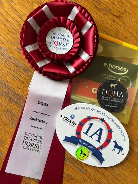 Aint It Blackjac, born on March 13, 2025, is an exceptionally typey Quarter Horse colt in a solid bay color without markings. His expected final height is approximately 15.0-15.3 hh. As a foal, he already impressed at the German Quarter Horse Association (DQHA) foal show, where he was awarded Reserve Champion for colt foals with an outstanding overall score of 82.17%, a remarkable testament to his quality. This young stallion captivates with his harmonious, compact, and very correct conformation, featuring well-developed musculature and a natural athletic build. Combined with his elegance, strong presence, and extraordinary charisma, Jac is truly a eye-catching prospect. His movements already display quality, elasticity, and expressiveness. His highly interesting pedigree combines willingness to perform and versatility, making him well-suited for a successful sporting career. Jac shows promising talent in Ranch Riding already today, but also possesses excellent potential for other disciplines. Beyond his athletic aptitude, he impresses most with his outstanding character. He is very people-oriented, trusting, and affectionate, approaching new situations with calmness and always maintaining a clear head. His curious, open-minded nature and quick learning ability make handling him a particularly pleasant experience and suggest an uncomplicated further training. He is raised appropriately in a herd with peers on spacious pastures and is also familiar with a paddock box. In daily handling, Jac already behaves exemplary: he is halter-led, knows trail walks, trailer loading, and is completely straightforward when working with the farrier and veterinarian. Picking up hooves and grooming are natural for him. Aint It Blackjac is healthy and robust, age-appropriately vaccinated and regularly dewormed. His genetic tests show 5-Panel n/n and MHYM n/n. The colt will be sold with AQHA registration papers and an equine passport. Whether as a future show horse with ambitions or as an extraordinary partner for an ambitious recreational rider – this young prospect combines quality, character, and potential in a special way. Due to his promising talent, he is ideally suited for a supportive show home. Both his dam and sire can be visited on-site; both have successful sport careers.