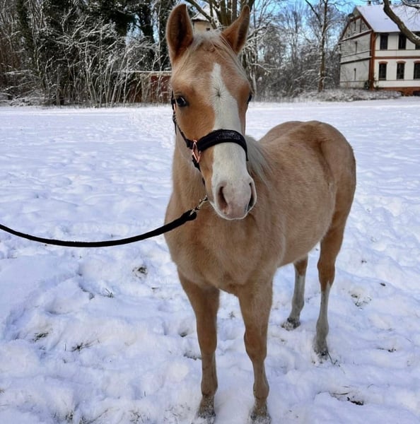 Zum Verkauf steht unser junger AQHA-Hengst WHIZZICAL VOODOO, genannt Whizzi. Geboren am 06.03.2025, in attraktiver Palomino-Farbe, gezogen in Deutschland. Whizzi ist ein Sohn von SHINERS VOODOO und bringt damit beste Voraussetzungen für eine sportliche Zukunft im Reining- oder Cowhorse-Bereich mit. Er zeigt sich korrekt gebaut, bewegungsstark und aufmerksam, dabei im täglichen Umgang sehr lieb, freundlich und unkompliziert. Ein netter junger Hengst mit angenehmem Charakter und viel Potenzial für die weitere Ausbildung. Kurzinfos: • AQHA Hengst, Palomino • Geboren: 06.03.2025 • Sohn von Shiners Voodoo • AQHA Reg.-Nr.: 6408187 • Microchip vorhanden • Abzeichen: Stern, Blesse & Schnippe, Socken an den Hinterbeinen • Standort: Deutschland • AQHA-Papiere vorhanden Geimpft entwurmt & nrha eingezahlt Ein spannendes Nachwuchspferd mit sportlichem Background und tollem Wesen. Preis: VB Weitere Infos, Fotos oder Videos gerne auf Anfrage Platz vor preis