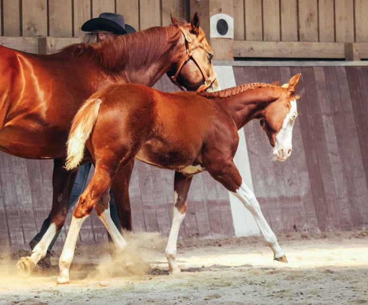 Our Hugo is looking for his future carrot giver for life 🥕 Since he was a foal, he has proven to be an exceptionally friendly, eager to learn, and pleasant young stallion. ✅ Knows the foal-ABC ✅ Well-behaved at the blacksmith ✅ Easily tolerates grooming and washing ✅ Shows calm, attentive, and balanced behavior in daily handling With his reining and ranch horse pedigree, Hugo has excellent prospects for a versatile future. His smooth, elastic movements and friendly nature suggest a bright future—whether in Western riding or as a reliable leisure partner. 🤎 🏆 At the PHCG Foal Show in Stoßberg, Hugo took 1st place among colt foals with an overall score of 7.85 and was awarded the PHCG Premium Foal distinction.