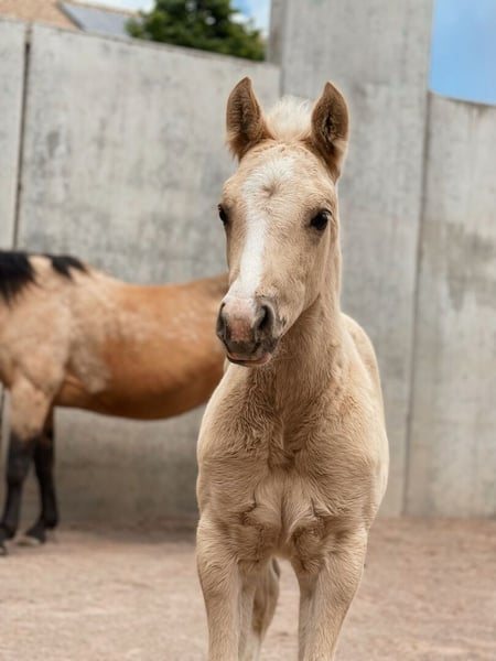 ⚜️ HH Golden Leap Day ⚜️ Wunderschöner Palomino Junghengst (geb. Februar 2024) aus erstklassiger Abstammung sucht seinen Menschen! Ein äußerst freundlicher, charismatischer 2-jähriger Hengst mit viel Ausdruck, Lauffreude und Arbeitswillen. Er überzeugt nicht nur durch seine Optik, sondern auch durch seinen ausgeglichenen, menschenbezogenen ruhigen Charakter. Wunderschöne Blesse, typvoller Körperbau, lange Mähne. 🐴 Aufzucht & Wesen ✔️ Artgerechte Aufzucht im Herdenverband – direkt vom Züchter ✔️ Sommermonate auf der Alm ✔️ Täglicher Umgang, wird regelmäßig von Kindern geputzt ✔️ Sehr verschmust und brav im Handling ✔️ Kennt die Führanlage 💉 Gesundheit & Betreuung ✔️ Beide Eltern 5-Panel n/n getestet ✔️ Regelmäßig entwurmt und geimpft ✔️ Beim Hufschmied vorgestellt (barhuf) 🎓 Ausbildungsstand ✔️ Kennt Longieren in allen Gangarten ✔️ Sattel bereits bekannt, lernt nun auch Trense kennen ➡️ Weitere schonende Ausbildung ab Sommer 2026 geplant ➡️ Preis steigt mit weiterer Ausbildung ➡️ Kann auf Wunsch gelegt werden 📍 Standort: Raum Bozen, Südtirol (Italien) 👉 Ein vielversprechender Nachwuchshengst für Sport oder Freizeit mit bester Basis und tollem Charakter. Bei Interesse gerne auch Mail an amelie.liegl@gmail.com